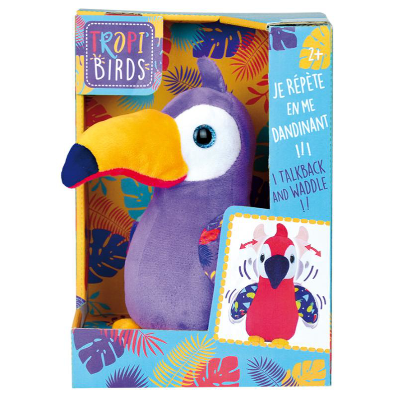 Jucariile de plus Jemini sunt create cu mare atentie, din materiale de foarte buna calitate, moi si placute la atingere, respectand cerintele europene de securitate. Cu o experienta de peste 50 de ani in domeniu, intreaga gama de produse este creata si fabricata in Franta. Acest minunat papagal vorbitor va inregistra vocea copilului si o va reda printr-un efect hazliu.  In timp ce va reda tot ce aude, va dansa si va crea o atmosfera super distractiva. Imita, danseaza si te distreaza! Dimensiune plus: 20 cm. Greutate plus: 205 gr. Varsta recomandata: 2ani+ Functioneaza cu 3 baterii LR03 AA, incluse. Spalarea plusului se va face doar pe suprafata jucariei cu ajutorul unei cârpe umede. Avertisment:  Va rugam sa indepartati ambalajul produsului inainte de a da jucaria copilului. Nu lasati ambalajele la indemana copilului.  Avertisment : A se folosi sub directa supraveghere a unei persoane adulte. Pastrati instructiunile si etichetele pentru referinte viitoare. Pastrati jucaria departe de orice sursa de caldura. Feriti jucaria de temperaturi ridicate si umiditate