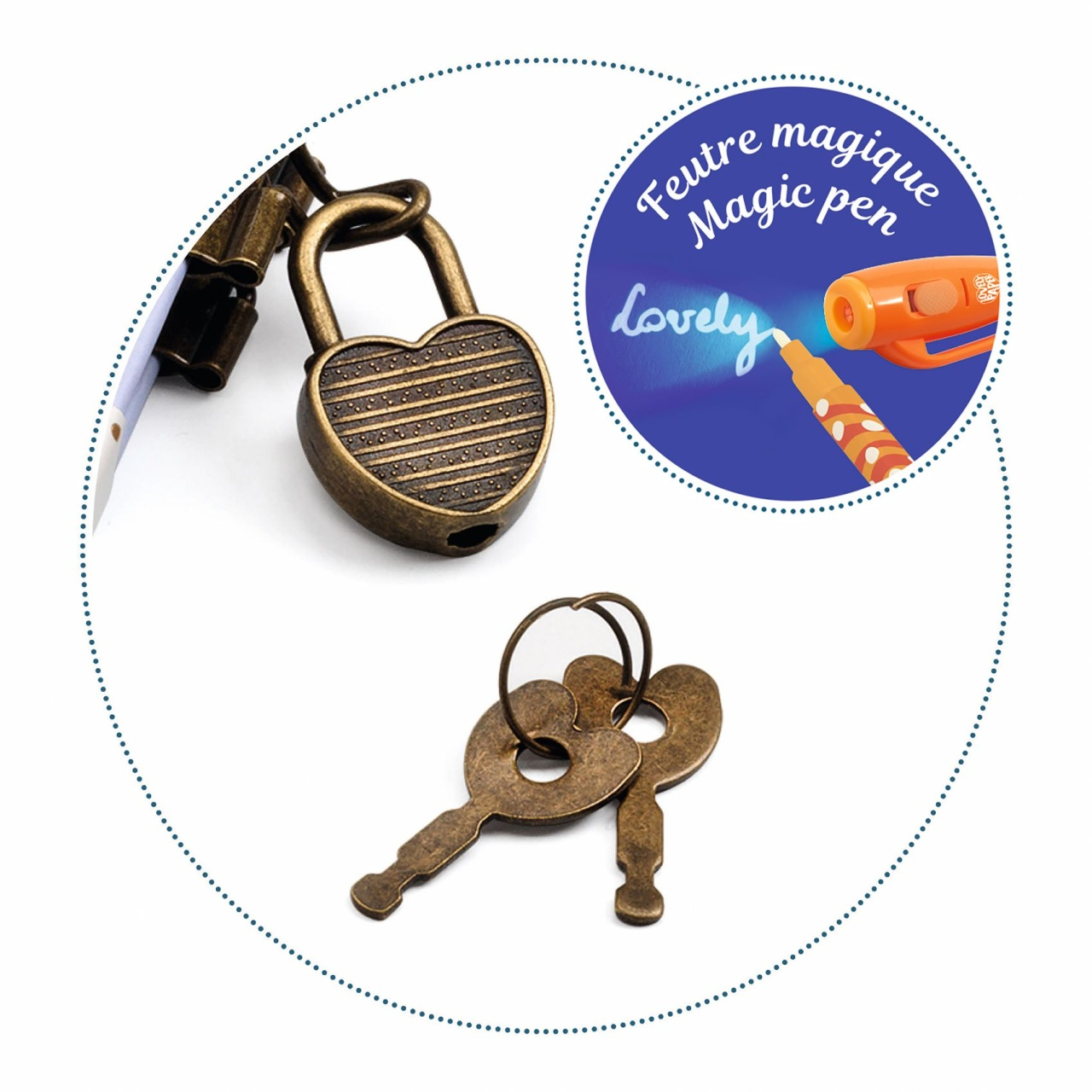 Jurnal cu 88 de pagini|hartie de 120gsm|coli liniate|lacatel si 2 chei|1 pix "magic" a carui pasta este invizibila cu ochiul liber si scrisul se vede doar cand este luminat cu lanterna de la capatul capacului (UV). Pixul functioneaza cu baterii 3LR44 HD|care sunt incluse in set. Varsta recomandata: + 7 ani. AVERTISMENT! Articol papetarie. Nu este jucarie. Contraindicat copiilor sub 3 ani. A se folosi sub directa supraveghere a unei persoane adulte. Producator: Djeco|Franta
