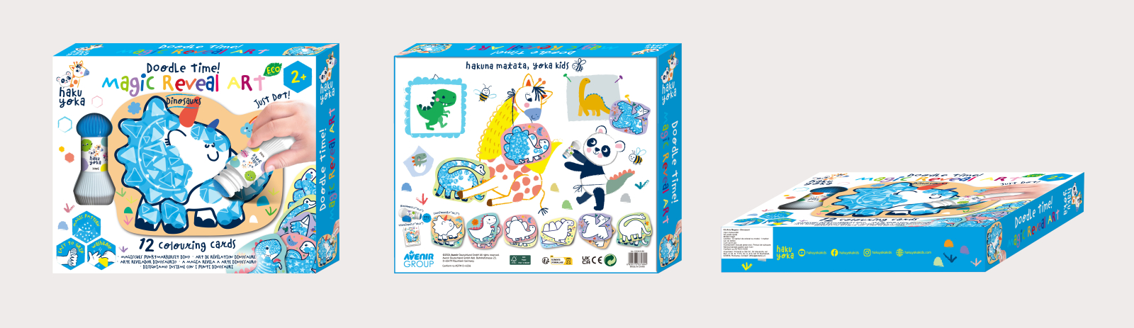 🦕 Kit Arta Magica - Dinozauri oferă copiilor o experiență artistică plină de surprize! Acest set captivant le permite celor mici să descopere modele ascunse cu ajutorul unui marker special, transformând fiecare punct într-o revelație colorată.