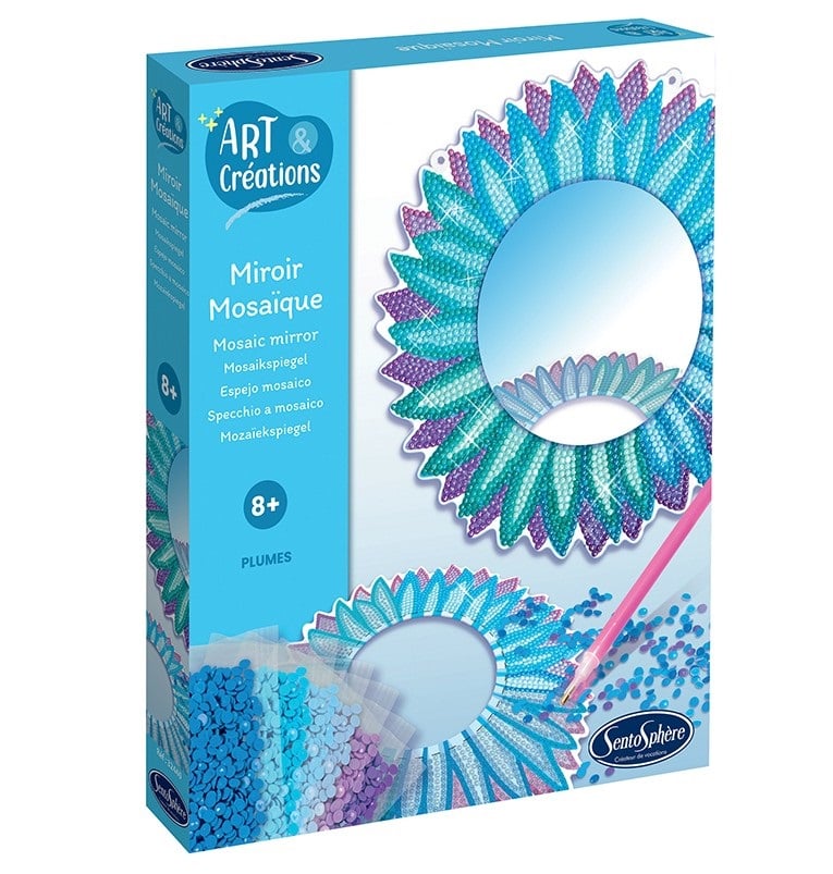 Realizati aceasta oglinda decorand penele cu mii de mici strasuri, o activitate manuala care necesita concentrare si rabdare! Asemanatoare cu Pixel Art, aceasta activitate manuala permite imbunatatirea unei ilustratii dragute, diamant cu diamant, cu culori superbe. Cu ajutorul unui mic "pix", trebuie doar sa prindeti strasurile si sa le transferati pe suprafata lipicioasa a conturului oglinzii. Fiecare caseta are o litera care corespunde unei culori de diamant, ceea ce face ilustratia foarte usor de colorat. O activitate captivanta pentru a crea un obiect de decor foarte frumos, care poate fi agatat sau asezat pentru a decora o camera (sau o baie). Sunt necesare aproximativ 4 ore pentru a finaliza oglinda. Odata finalizata, oglinda poate fi asezata pe masa cu ajutorul piciorului suport din plastic, sau poate fi agatata in camera sau in baie pentru un decor personalizat. Pentru tine sau pentru un cadou, aceasta activitate captivanta este frumoasa atat pentru cei mici, cat si pentru adulti. Contine: • 1 oglinda imprimata si acoperita cu adeziv, gata de decorat cu strasuri • Mii de strasuri in culori, marimi si forme diferite • 1 "pix" pentru prinderea strasurilor • 1 tavita verde pentru organizarea strasurilor • 1 placuta mica cu 5 elemente adezive • 1 foita roz, din ceara, ce face ca varful pixului sa devina lipicios si sa prinda usor diamantele • 1 picior suport din plastic si un lantisor metalic pentru a putea agata oglinda intr-un cui • 1 notita explicativa Cutie din carton reciclat in proportie de 89%. Varsta recomandata: 8 ani + Dimensiuni cutie: 27 x 21 x 3.5 cm Material: carton, plastic Brand: SENTOSPHERE Atentie: Nerecomandat copiilor sub 3 ani, conține piese mici, pericol de sufocare.