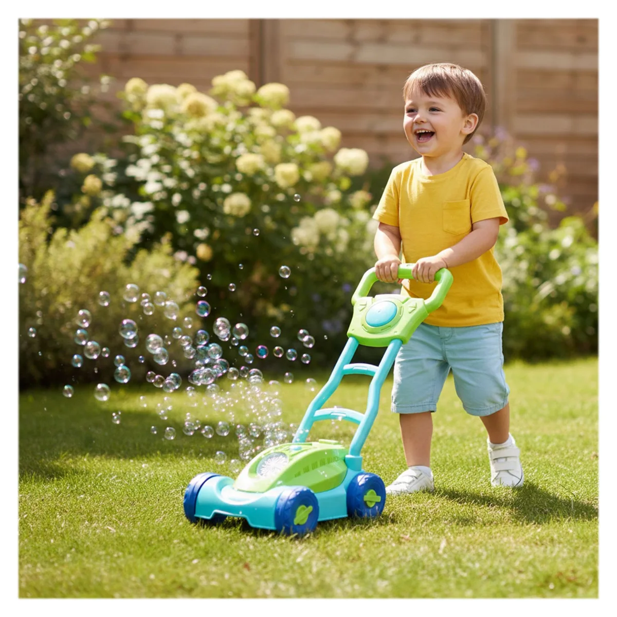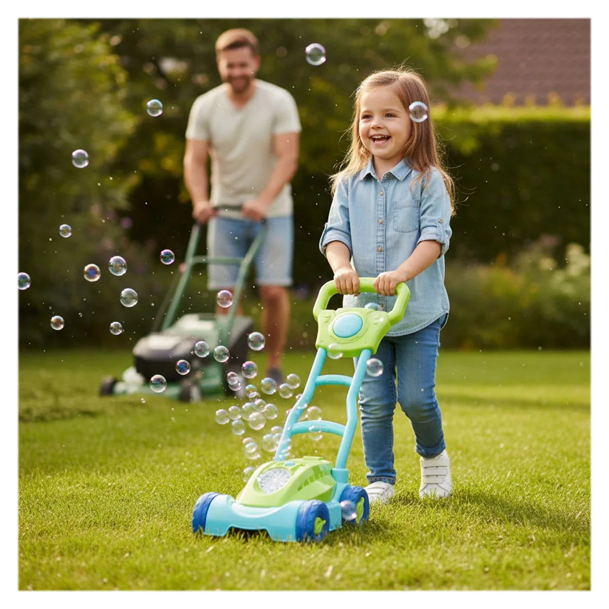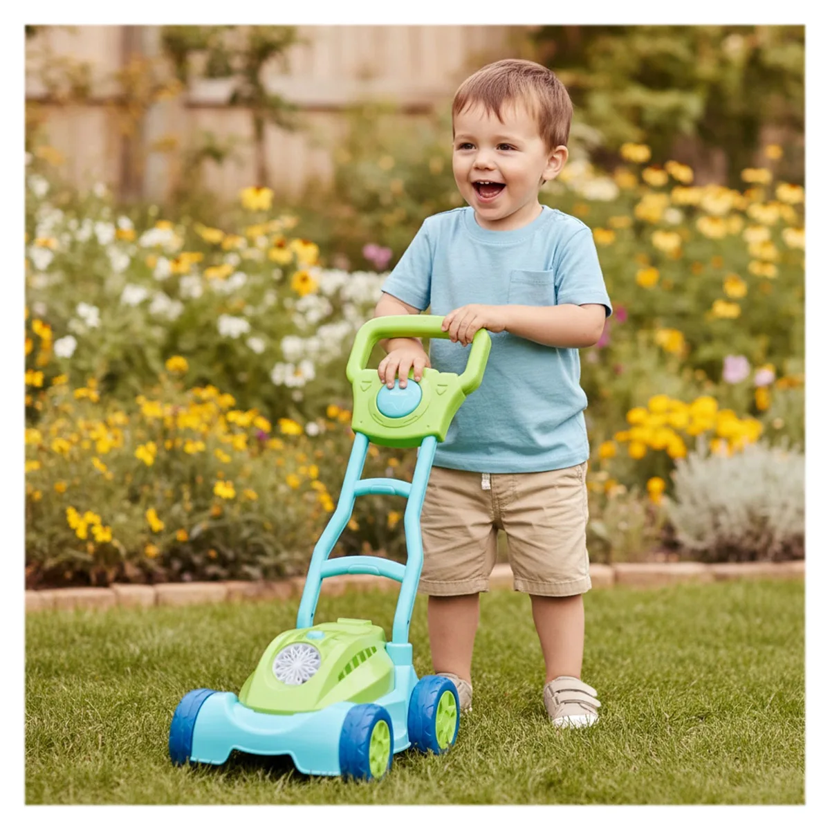 Designul inspirat de o mașină reală de tuns iarba le permite copiilor să imite activitățile adulților într-un mod distractiv. Claxonul suplimentar scârțâitor oferă distracție sonoră, în timp ce lumina LED albastră de sub elice adaugă un aspect vizual deosebit. Această jucărie combină perfect joaca activă în aer liber cu jocurile de rol imaginative.