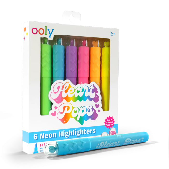 Neon + inimioare = evidențiatoare super „cute”! Adu culoare și creativitate în notițele tale cu Heart Pops Neon Highlighters!