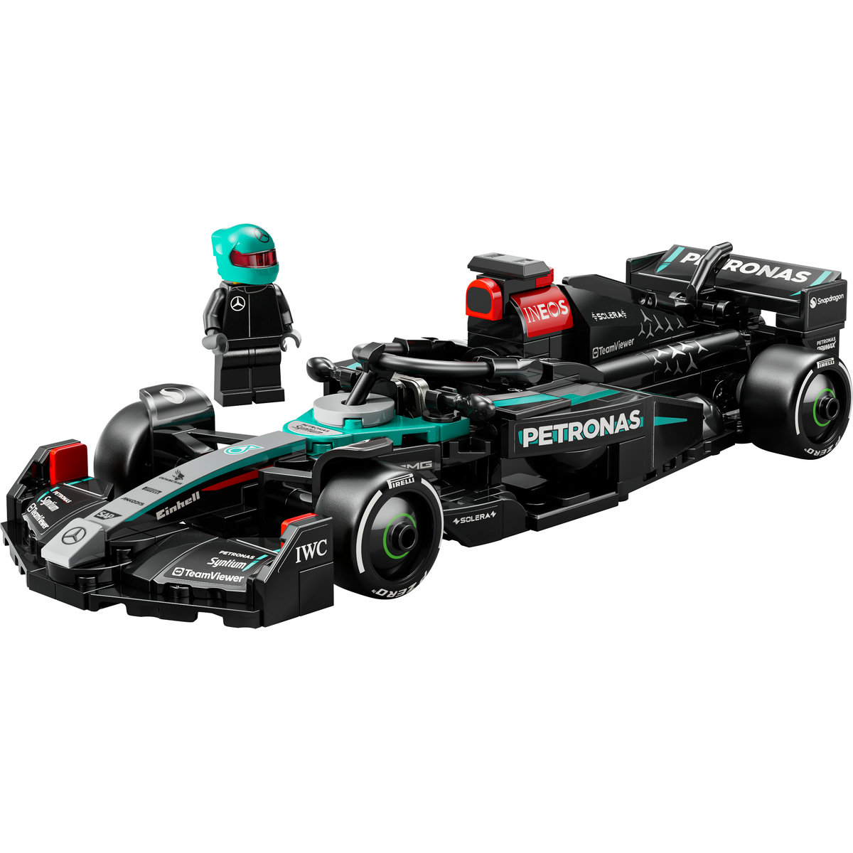 Modelul F1 are un cockpit care se deschide prin ridicarea barei de protecţie Halo, o aripă spate, suspensie cu braţ triunghiular, stickere ale sponsorilor şi anvelope spate mai late, imprimate cu numele +u201ePirelli+u201d. Modelul construibil include şi o minifigurină pilot care poartă ţinuta Mercedes-AMG PETRONAS F1 Team şi o cască. Minifigurina poate fi plasată în cockpit şi poate fi folosită la joaca de-a cursele.