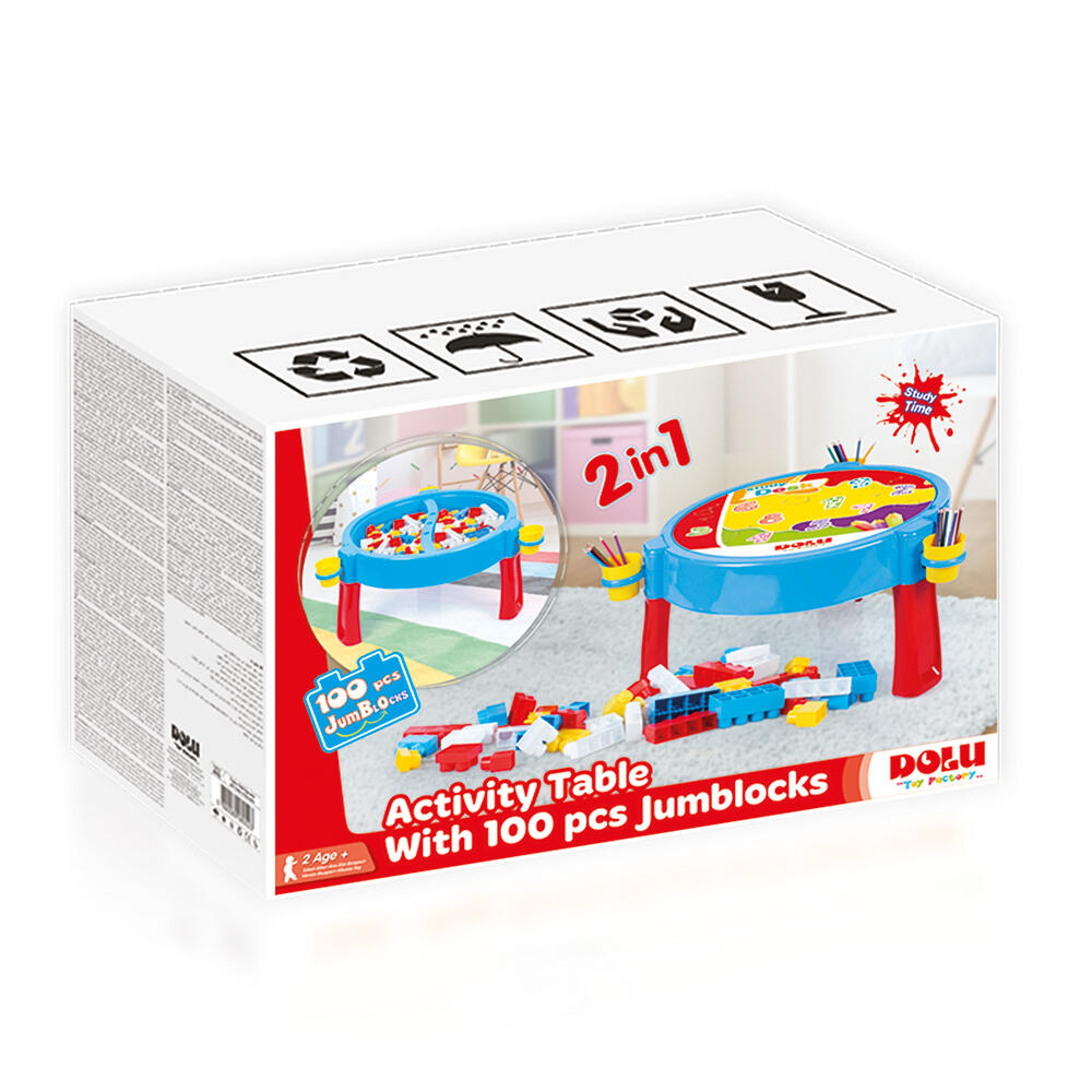 In interiorul masutei vei gasi cuburi viu colorate, cu ajutorul carora vei asimila concepte simple legate de culori, forme si marimi.