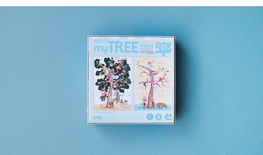Fii parte din povestea copacului care se schimba la fiecare anotimp, gasind corect piesele ale acestui puzzle reversibil. Puzzle cu 100 de piese, de mici dimensiuni, cu 2 fete- puzzle reversibil. Imaginea finala are dimensiunea de 23,5 x 16,5 cm Design: Txell Darne. Varsta recomandata: +6 ani. AVERTISMENT: Contraindicat copiilor sub 3 ani, contine piese mici, pericol de sufocare. A se utiliza sub directa supraveghere a unui adult. Producator: Londji, Spania