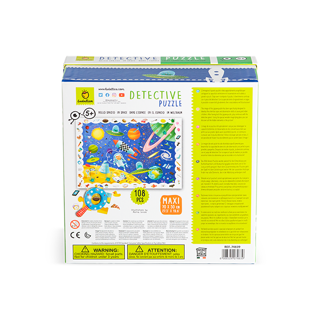 Când puzzle-ul este gata, distracția continuă cu un joc de-a detectivul! Folosește lupa specială, cu mâner din lemn, ca să găsești toate obiectele ascunse în imagine.