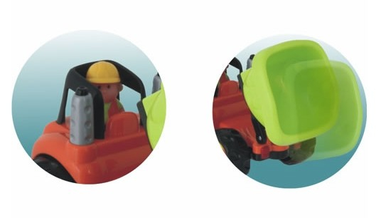O basculanta "vorbitoare" care scoate sunete de motor si de esapament. Soferul vorbeste cand este apasat si luminile sunt aprinse. Bateriile sunt incluse. Inaltime: 20 cm.