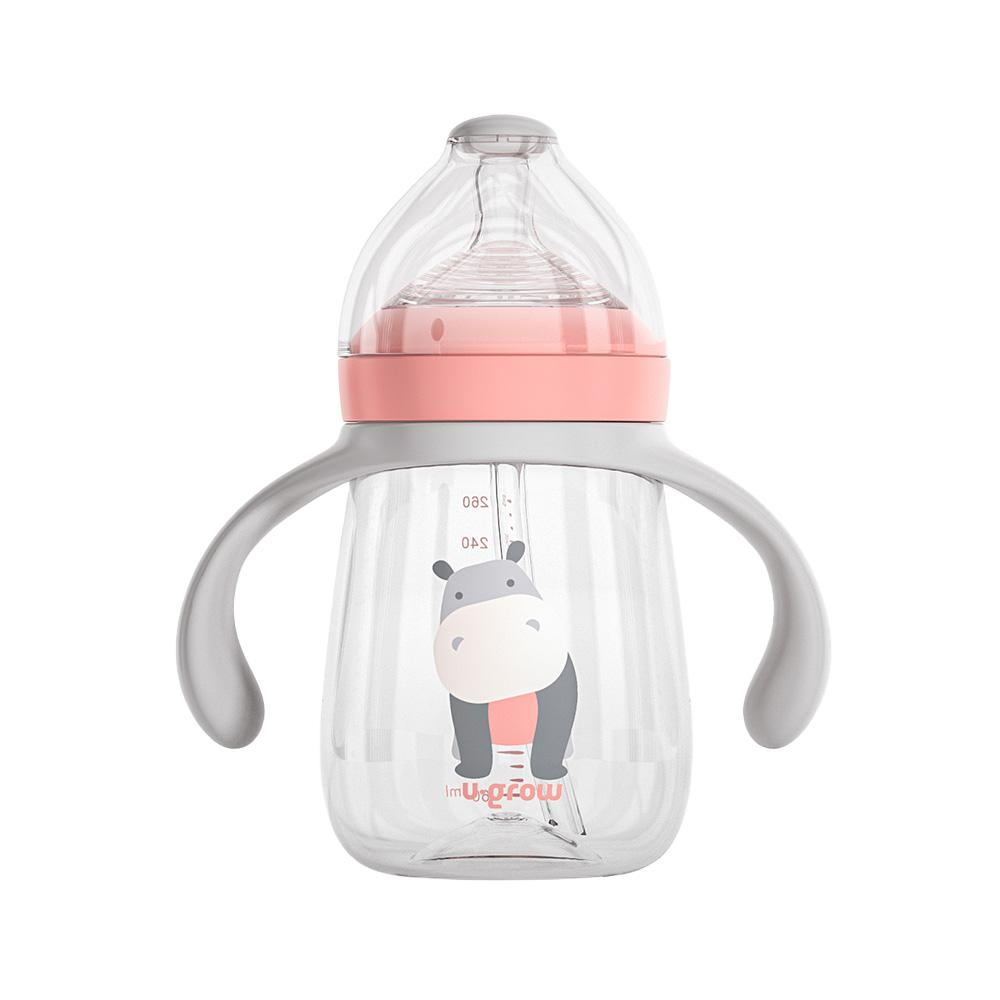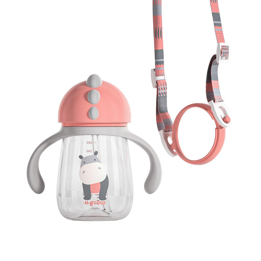 Pachet 3 in 1 cana 260 ml tritan cu 3 accesorii diferite pentru baut : tetina biberon, cioc , pai, dark pink, U-Grow