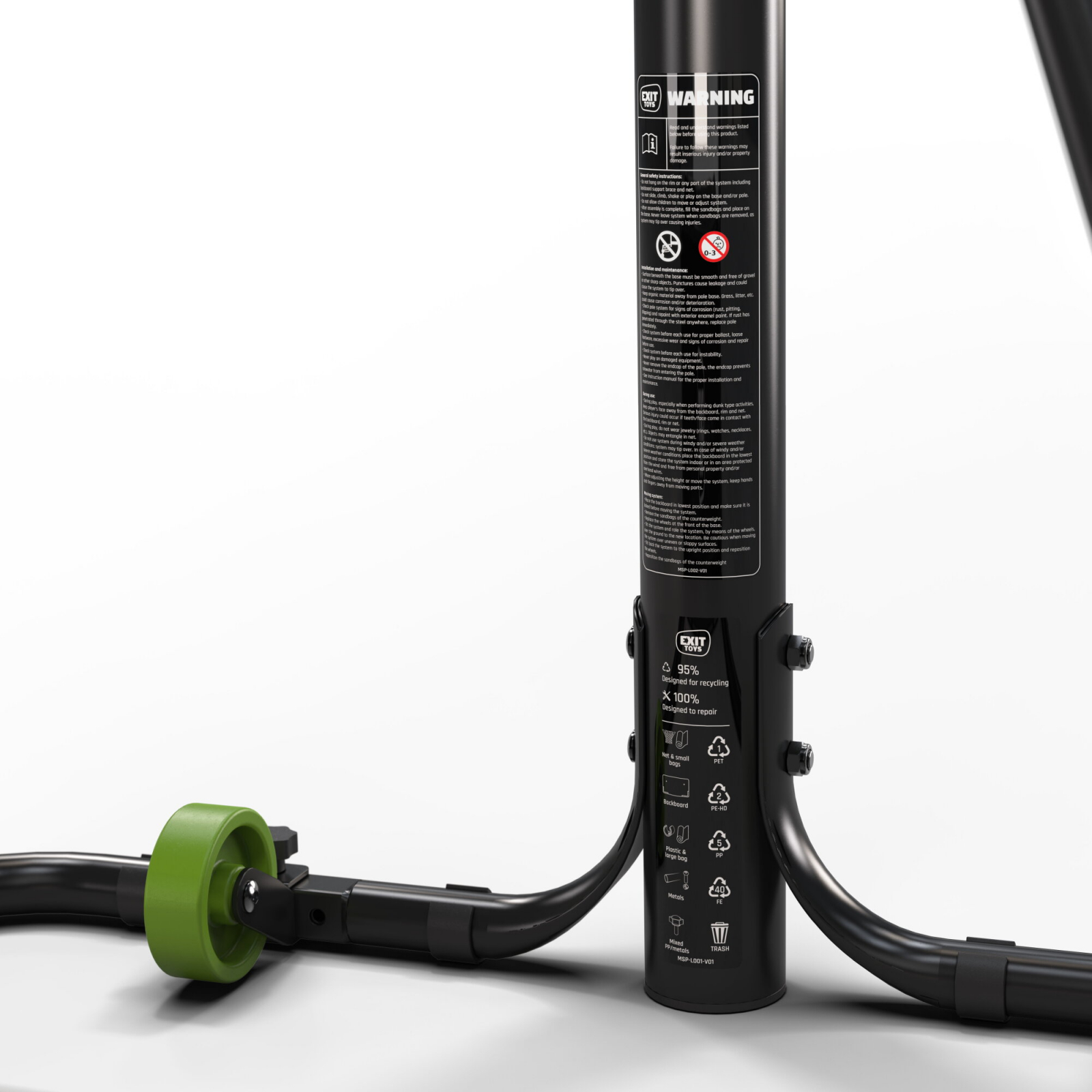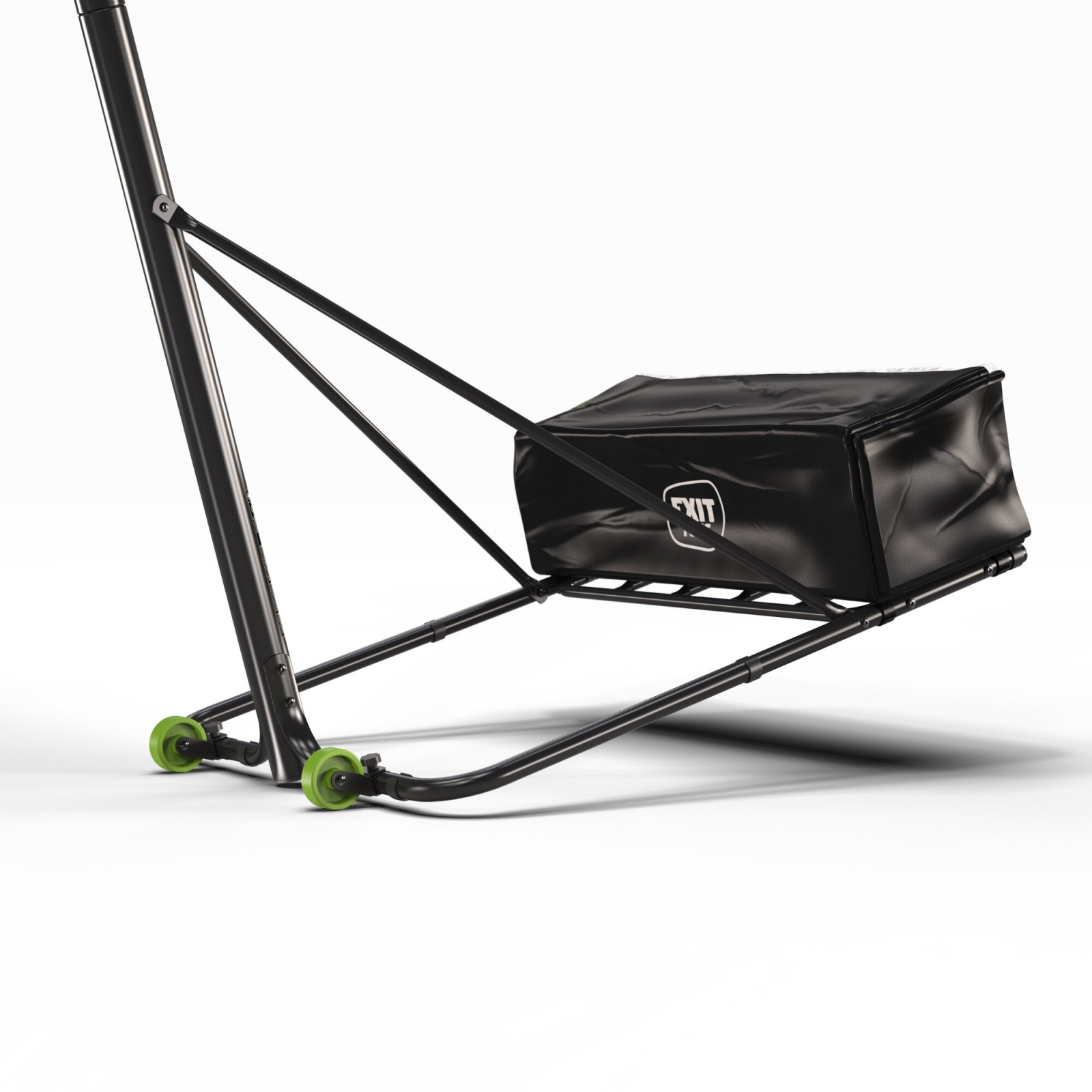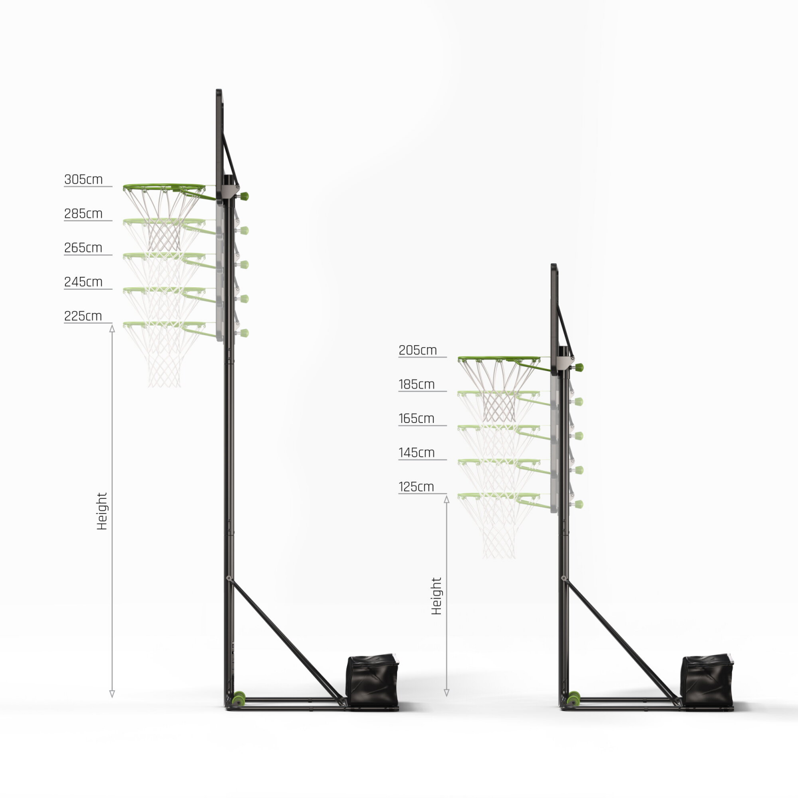 Placa de baschet EXIT NovaStar reglabilă pe înălțime este un sistem inovator de baschet pe roți, conceput pentru a crește odată cu tine sau cu copilul tău. Placa de baschet mobilă, care include o placă de baschet fermă și un coș de baschet, are o înălțime reglabilă. Cu nu mai puțin de 10 poziții diferite, sistemul este potrivit pentru orice vârstă și orice nivel. În plus, NovaStar oferă opțiunea de a începe ca jucător de baschet începător și de a avansa la un nivel senior folosind același sistem de baschet. Designul unic facilitează trecerea de la poziția junior la cea senior. Cadrul reglabil pe înălțime este format din două tuburi de cadru în versiunea junior și trei tuburi de cadru în poziția senior. Pentru poziția senior, pur și simplu montați o piesă suplimentară, făcând placa de baschet mai înaltă. Placa de baschet portabilă EXIT NovaStar are 10 înălțimi opționale. Poziția junior are cinci poziții diferite (125 – 145 – 165 – 185 – 205 cm). Poziția pentru seniori include, de asemenea, cinci poziții (225 – 245 – 265 – 285 – 305 cm), dintre care cea mai înaltă poziție este înălțimea oficială a meciului. Înălțimea coșului poate fi ușor ajustată cu butonul de reglare. Indiferent dacă doriți să jucați baschet în grădină, pe alee sau într-o altă locație, cu ajutorul roților convenabile, puteți muta cu ușurință placa de baschet. În spate, există o contragreutate cu trei saci de nisip pe care îi puteți umple singuri. Această contragreutate asigură că placa de baschet NovaStar rămâne în siguranță la locul ei. Placa de baschet NovaStar reglabilă pe înălțime, care crește odată cu dvs., a fost dezvoltată în conformitate cu filosofia noastră sustenabilă EXIT. Placa de baschet este, de exemplu, 100% reparabilă. Aceasta înseamnă că fiecare piesă poate fi înlocuită. În plus, placa de baschet este 100% reciclabilă, deoarece au fost folosite doar materiale mono. Acestea sunt materiale care constau dintr-un singur tip de materie primă, ceea ce le face mai ușor de reciclat, deoarece nu este necesară o împărțire a materiilor prime. Rama metalică neagră a fost galvanizată și vopsită în câmp electrostatic. Din această cauză, rugina nu are nicio șansă, iar NovaStar poate rezista la toate condițiile meteorologice.