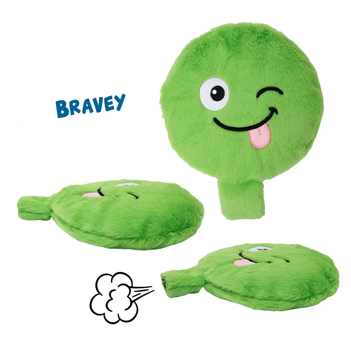 Perna de pluș "Bravey" este mai mult decât o jucărie - este un companion plin de personalitate! Cu un design vesel și o expresie năzdrăvană, Bravey îi încurajează pe copii să fie curajoși și să se exprime liber. La fiecare apăsare, perna scoate un sunet amuzant de pârț care provoacă hohote de râs și creează momente de joacă memorabile.