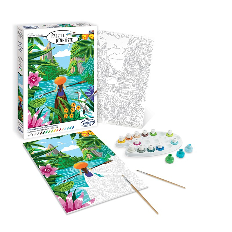 Pornește într-o călătorie prin această pictură și lasă-te sedus de culorile sale vii și exotice. Oferă-ți o experiență artistică unică, realizând acest tablou captivant! Lasă valurile pensulei să te ghideze în recrearea acestei picturi pe numere Palette d’Artiste – Lagună din Thailanda. Scufundă-te în ape limpezi și strălucitoare, înconjurate de vegetație luxuriantă și flori tropicale. Cu vopselele acrilice incluse în set, creează o lucrare luminoasă și realistă care te va purta într-o adevărată călătorie! Conceput pentru adolescenți și adulți , acest kit oferă o experiență unică de pictură pe numere. Colecția Sentosphere a fost dezvoltată pentru a asigura un proces creativ plăcut și ușor: pânza fină și ușor de manevrat permite o aplicare uniformă a vopselei, fără să se prindă, facilitând trasarea precisă a contururilor. Setul include mai multe pensule adaptate dimensiunii lucrării, împreună cu o paletă de 13 până la 17 culori acrilice atent selecționate. Vei îndrăgi textura lor fluidă și finisajul satinat, care oferă rezultate impecabile și o acoperire perfectă. Vopseaua este pe bază acrilică, realizată din ingrediente bio de origine vegetală europeană, în proporție de 50%. Această compoziție păstrează textura satinată a vopselei, oferind un rezultat luminos și garantând o aplicare non-lipicioasă. Paleta inclusă îți permite să creezi propriile nuanțe pentru un plus de originalitate și o notă personală, oferindu-ți libertatea de a-ți exprima creativitatea. În plus, fișa cu instrucțiuni oferă o versiune mai clară a modelului, cu linii și numere mai evidențiate, pentru a te ghida mai ușor în procesul de colorare. Fabricat în Franța , Palette d’Artiste îmbină calitatea , accesibilitatea și distracția pentru oricine dorește să evadeze prin pictură. Eliberează-ți mintea și lasă-te ghidat de numere și culori pe tot parcursul lucrării. Lasă-te purtat de peisajele și modelele deosebite și trăiește o experiență artistică unică! Conține: 1 tablou canvas ilustrat și numerotat (25 x 32,5 x 1,8 cm) Minimum 13 culori de vopsele acrilice non-toxice Pensule de înaltă calitate 1 paletă pentru amestecul culorilor 1 set de instrucțiuni multilingve despre percepția culorilor Vârsta recomandata : 8 ani + Dimensiuni cutie: 34 x 25,5 x 3 cm Materiale: carton si plastic, reciclate Brand: SENTOSPHERE Beneficiile picturii pe numere: Reduce stresul și anxietatea Îmbunătățește concentrarea și dezvoltă răbdarea Stimulează creativitatea Dezvoltă abilitățile motorii fine Favorizează relaxarea și buna dispoziție Crește sentimentul de realizare personală. O terapie relaxantă Cu culori vii și o aplicare fluidă, fiecare mișcare a pensulei devine un moment de plăcere și satisfacție. Numerele și culorile îți vor elibera mintea de orice grijă și îți vor permite să te bucuri pe deplin de acest moment creativ. Un produs ECO-conceput Această gamă este produsă în Franța și a fost dezvoltată într-o logică de eco-conceptie, pentru a oferi un moment creativ si relaxant respectând cat mai bine planeta și generațiile viitoare. Fiecare material a fost ales cu atenție după cum urmează: Bază acrilică realizată cu 50% ingrediente bio-sursă Sticle și capace realizate din 50% PET reciclat Paletă realizată din 70% material reciclat Cutie realizată din 100% carton reciclat certificat FSC Avertisment: Jucărie testată în laborator, care garantează conformitatea cu Directiva 2009/48/CE pentru un copil de peste 8 ani. ATENTIE! Nu este potrivită pentru copiii sub 3 ani. Elemente mici. Pericol de sufocare.