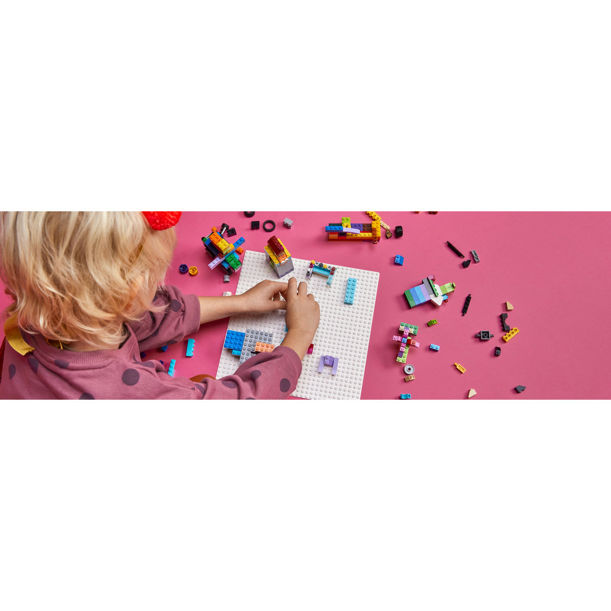 Pune bazele jocului imaginativ cu final deschis cu LEGO® Classic Placă de bază albă (11026). Măsurând peste 25 cm pătraţi, această jucărie de construcţie de un alb luminos oferă copiilor un peisaj LEGO spaţios de 32x32 butoane, pe care să construiască, să se joace şi să expună.