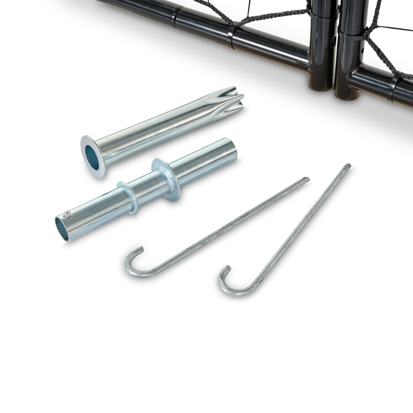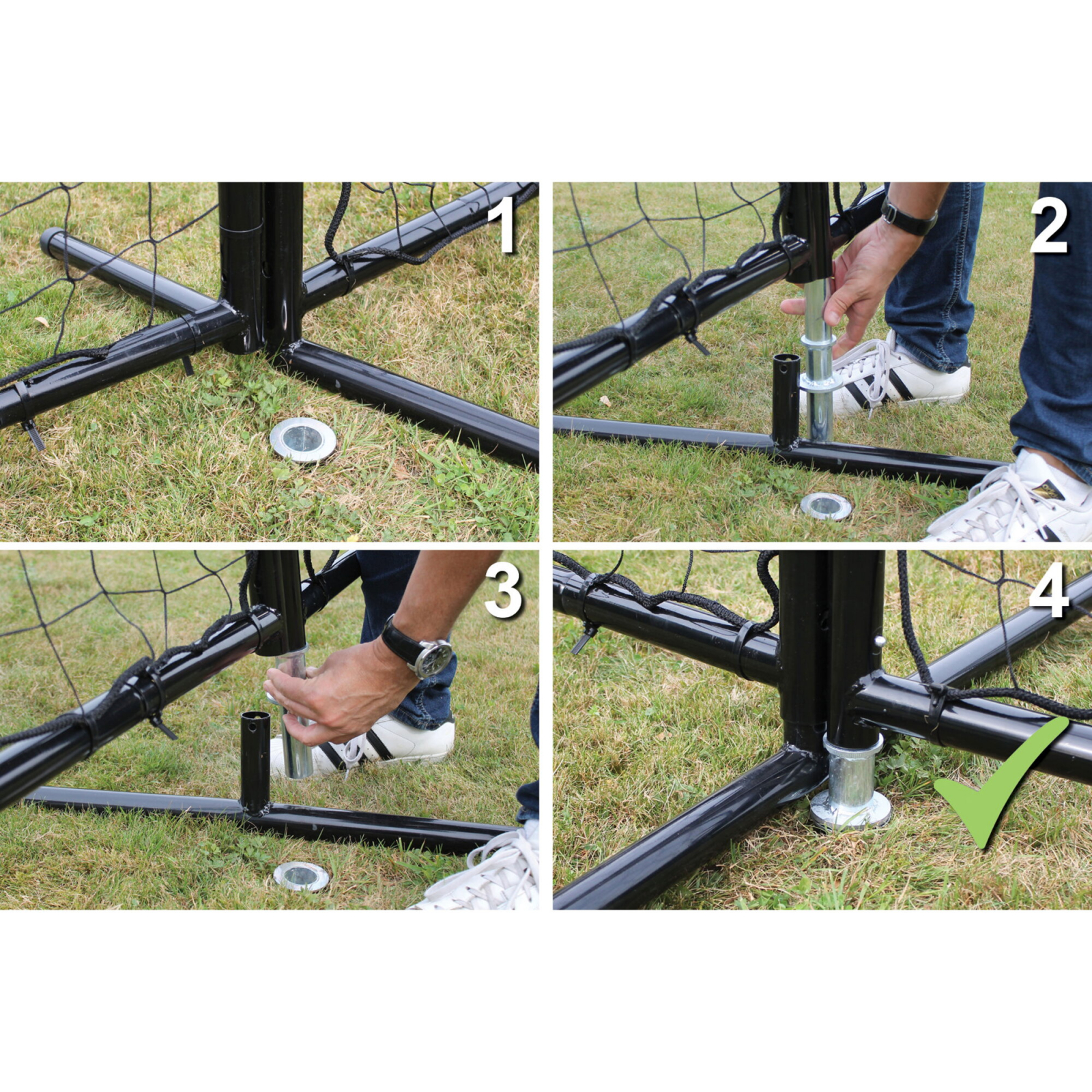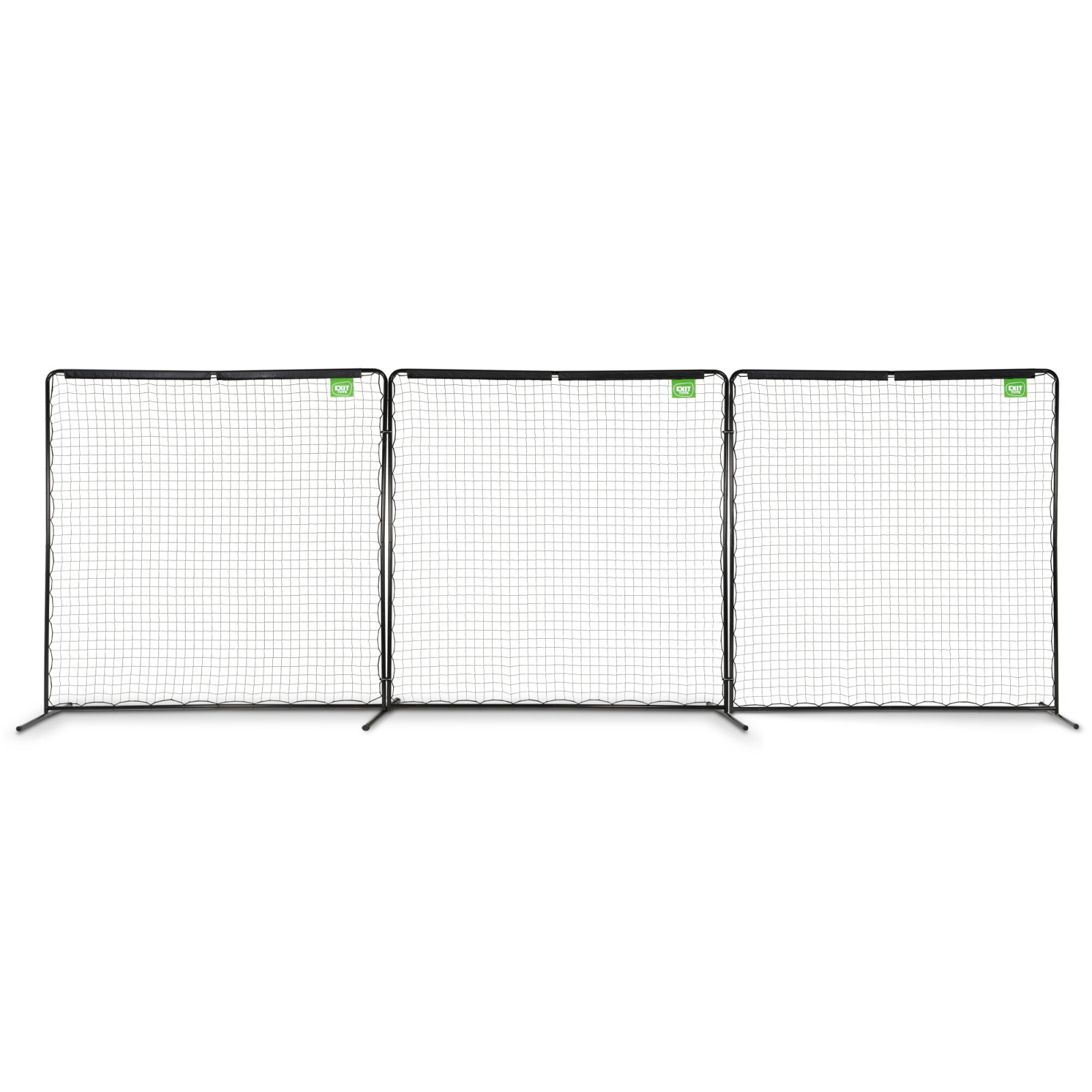 Plasa sport EXIT Backstop este dispozitivul ideal de prindere a mingii pentru grădină. Prinderea mingii este formată din trei rame negre, fiecare de 300 x 300 cm, care pot fi atașate una de cealaltă până la o înălțime de 9 metri și o lățime de 3 metri. Rama este galvanizată și vopsită în câmp electrostatic pentru o durată lungă de viață și un aspect frumos. Picioarele orizontale, ancorate cu ajutorul unor cuie și a unei ancore la sol, asigură că plasa sport rămâne la locul ei chiar și cu mingea lovită cu cea mai puternică putere. Plasa sport EXIT Backstop se potrivește atât într-o grădină mică, cât și într-una mare, deoarece cele trei rame pot fi amplasate în diferite unghiuri. Chiar și pe un teren de sport, această plasă nu va fi deplasată.