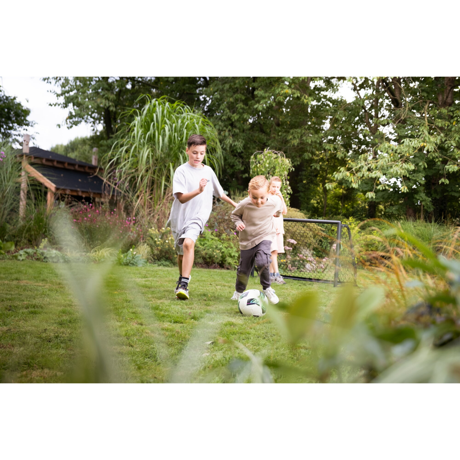 Poarta de fotbal EXIT Scala din aluminiu, de culoare neagră, este o poartă de fotbal premium ultra-rezistentă și ușoară, potrivită pentru grădină. Această poartă de fotbal cu cadru din aluminiu are un finisaj de înaltă calitate și un aspect sportiv și profesional. Cadrul său rezistent la rugină are o durată lungă de viață. Poarta de fotbal EXIT Scala, cu dimensiunile de 120 x 80 cm, poate fi mutată cu ușurință și, datorită dimensiunilor sale compacte, poate fi utilizată excelent în orice grădină. Poarta poate fi instalată într-o clipă. Plasa rezistentă și durabilă are ochiuri hexagonale: o caracteristică tipică pentru o poartă profesională. Datorită unei construcții inteligente, plasa este integrată perfect în cadru. Se asigură că mingea nu poate trece între cadru și plasă. Materialul de montare cu care plasa este fixată în cadru este fabricat din oțel rezistent la rugină. Datorită acestui fapt, aceste piese sunt foarte rezistente la toate condițiile meteorologice, iar rugina nu are nicio șansă. Poartele de fotbal din aluminiu Scala au fost dezvoltate în conformitate cu filosofia noastră sustenabilă EXIT. Aceste porți de fotbal, de exemplu, sunt 100% reparabile. Aceasta înseamnă că fiecare parte a acestei porți poate fi înlocuită. În plus, aceste porți de fotbal sunt 100% reciclabile. Acest lucru se datorează faptului că au fost folosite doar materiale mono. Acestea sunt materiale care constau dintr-un singur tip de materie primă. Sunt mai ușor de reciclat deoarece nu este necesară separarea materiilor prime. În plus, materialele folosite pentru aceste porți de fotbal Scala sunt complet lipsite de PVC.