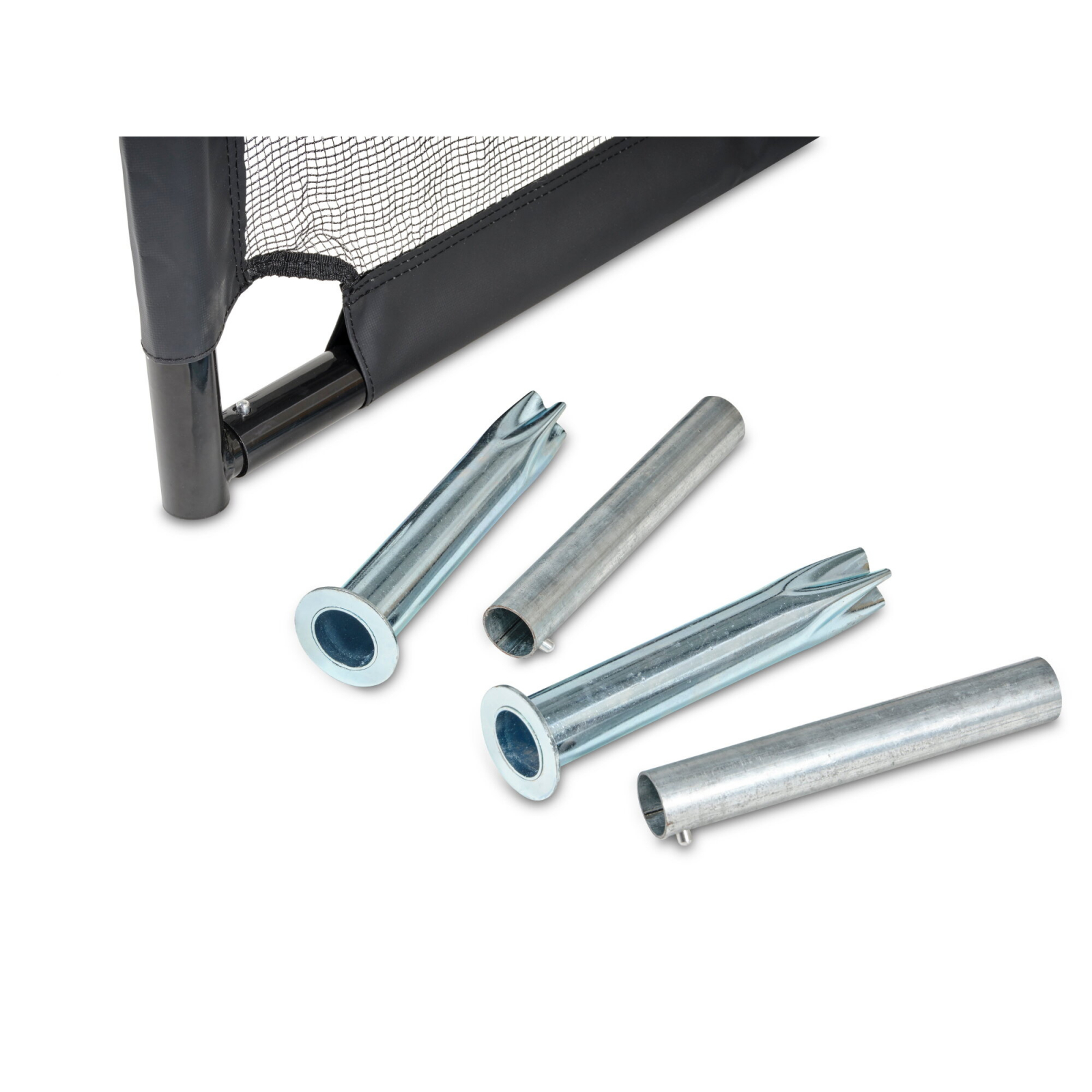 Poarta de fotbal din oțel EXIT Finta este o poartă de fotbal mare, neagră, care vă va permite să vă bucurați de ore întregi de distracție fotbalistică. Poartele de fotbal din oțel Finta sunt robuste, practice și au un design frumos. Provocați-vă prietenii la un meci de fotbal și vedeți cine poate șuta cel mai bine folosind ecranul de antrenament inclus în set, pe care îl puteți agăța cu ușurință de cadru. Poarta de fotbal EXIT Toys Finta vine standard cu un set de ancorare care constă din ancore de sol și tuburi de ancorare.