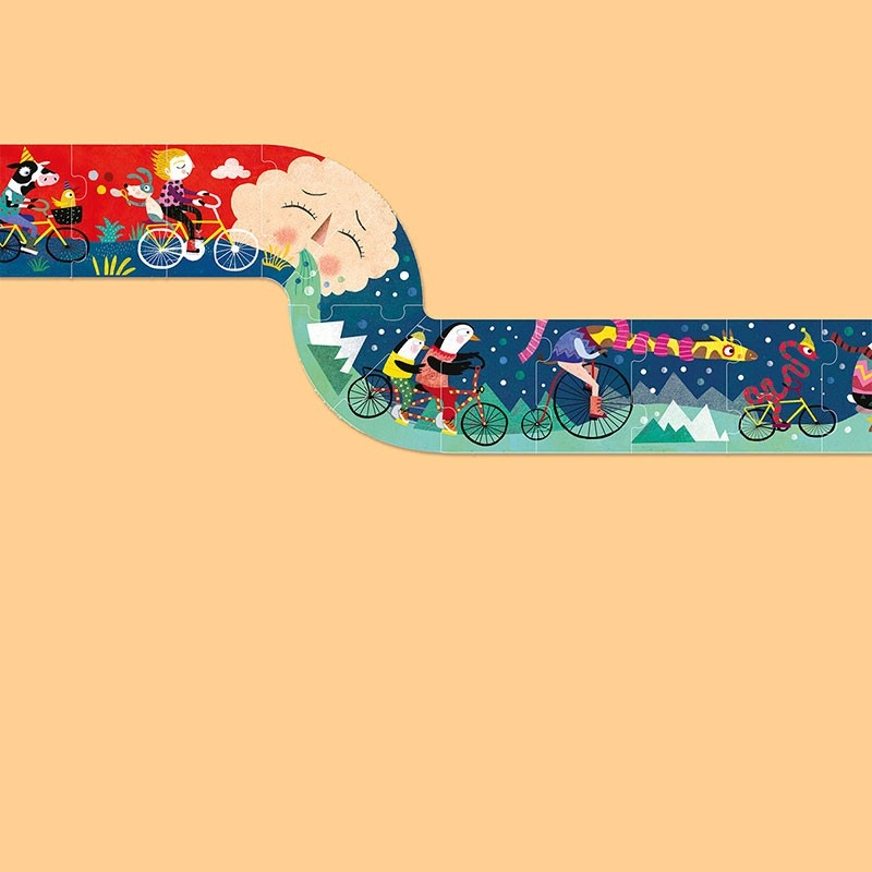 Varsta recomandata: + 5 ani Puzzle gigant cu 54 de piese. Descopera cat rezisti in marele tur al biciclistilor! Confectionat din carton ecologic, nontoxic, conform reglementarilor EN71&ASTM. Dimensiune puzzle final: 300 x 9 cm. AVERTISMENT: Contraindicat copiilor sub 3 ani, contine piese mici, pericol de sufocare. A se utiliza sub directa supraveghere a unui adult. Producator: Londji, Spania