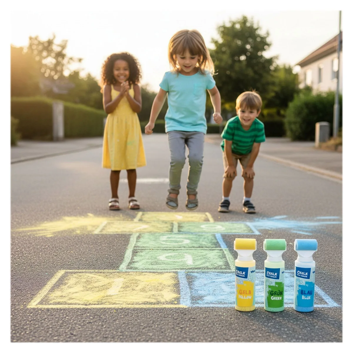 Ideal pentru șotron, desen liber sau jocuri creative, acest set încurajează copiii să petreacă mai mult timp afară. Rolele din spumă asigură o aplicare uniformă și intensă a culorilor.