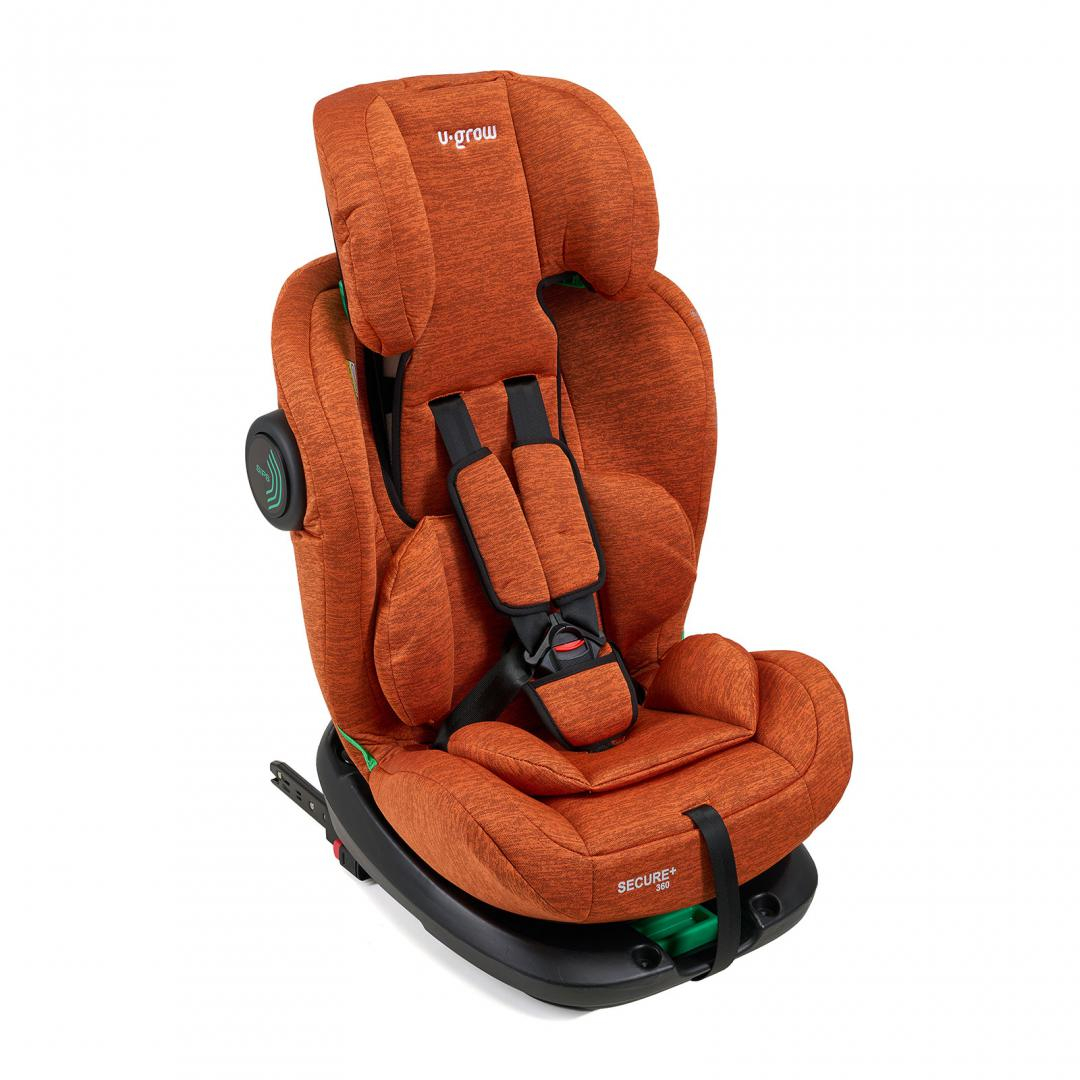 Scaun auto U-Grow Secure+ 40-150 cm ,360 grade , 4 pozitii de ajustare pe spate , 10 pozitii de ajustare a tetierei pe inaltime, Golden Cognac, U-Grow