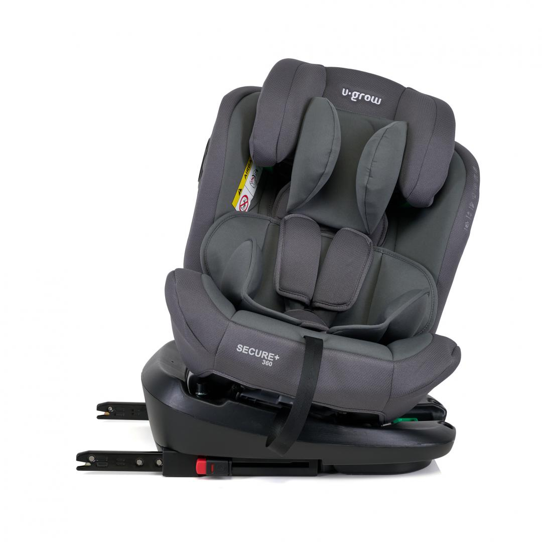 Scaun auto U-Grow Secure+ 40-150 cm , 360 grade , 4 pozitii de ajustare pe spate , 10 pozitii de ajustare a tetierei pe inaltime, gri, U-Grow