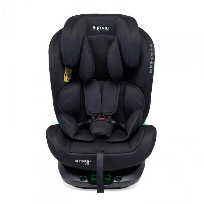 Scaun auto U-Grow Secure+ 40-150 cm, 360 grade , 4 pozitii de ajustare pe spate , 10 pozitii de ajustare a tetierei pe inaltime, negru, U-Grow