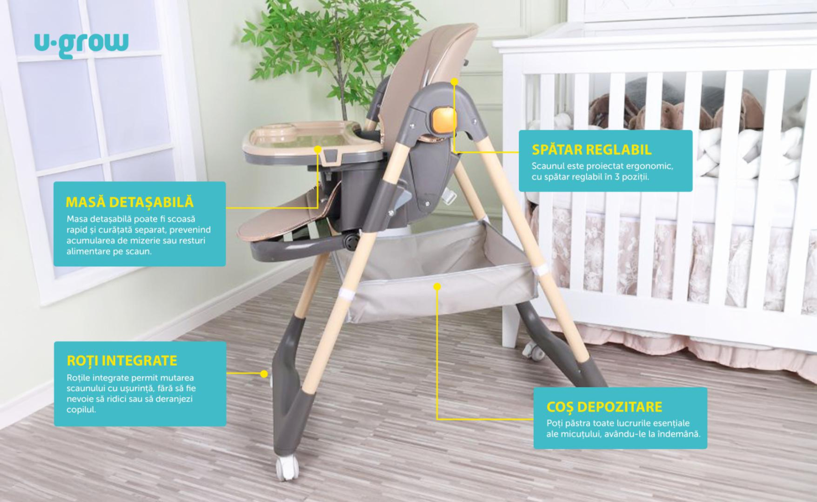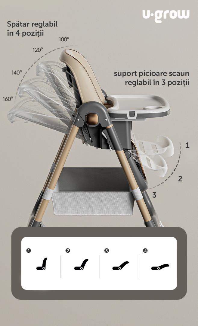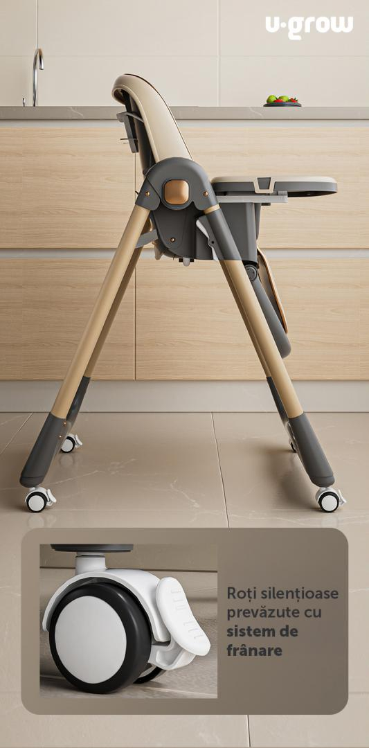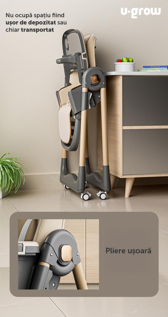 Scaun de masa cu inaltime reglabila, spatar ajustabil in 4 pozitii, pliabil, brown, U-Grow