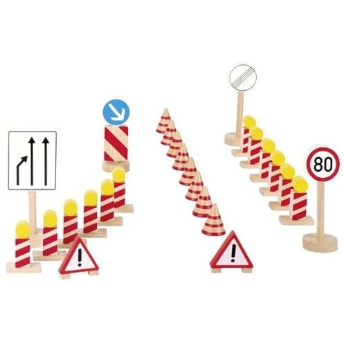 Trebuie sa semnalizam drumul in constructie! Caracteristici: Material: lemn.Setul contine 26 de piese de inaltimi variabile.Vopsea non-toxica Varsta recomandata: +3 ani Contraindicat copiilor mai mici de 3 ani. Jucaria/produsul poate contine piese mici care se pot inghiti sau inhala existand pericolul de sufocare sau nu este potrivita copiilor mai mici de 3 ani. Nu lasati ambalajele jucariilor/produselor la indemana copiilor. Indepartati orice ambalaj al jucariei/produsului inainte de a da jucaria/produsul copilului. Va rugam sa supravegheati copilul in timp ce se joaca/foloseste acest produs. Pastrati instructiunile si etichetele pentru referinte viitoare. Pastrati jucaria/produsul departe de foc; feriti jucaria/produsul de temperaturi ridicate si umiditate.