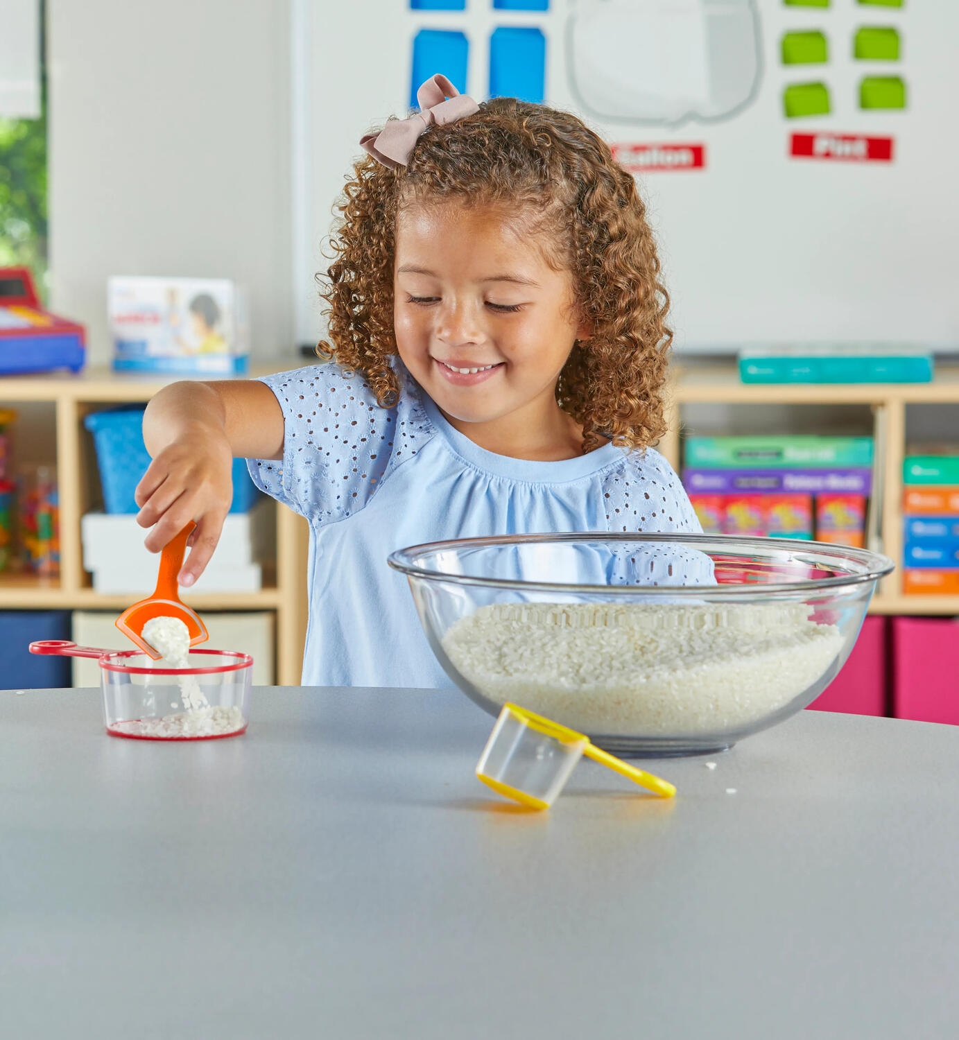 Ajuta copiii sa invete sa masoare si sa cantareasca, precum si sa-si exerseze cunostintele referitoare la volum si compararea cantitatilor