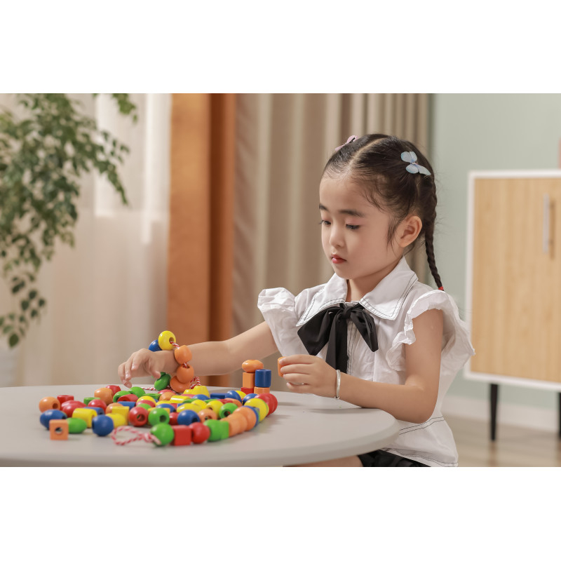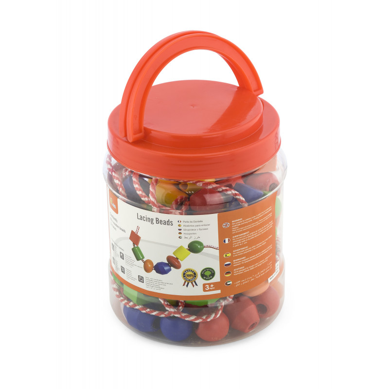 Setul include 90 de margele din lemn, frumos colorate si 5 sireturi. Toate piesele sunt depozitate intr-un recipient cu capac din acrilic.  Setul de insirat stimuleaza creativitatea copiilor, ii incurajeaza sa exerseze numararea si le dezvolta motricitatea fina.  Jucarie educativa din lemn, Montessori. Dimensiuni: D13 * 15,5 cm Varsta recomandata: 3 ani+ *AVERTISMENT! Contraindicat copiilor mai mici de 3 ani. Jucaria/produsul poate contine piese mici care se pot inghiti sau inhala existand pericolul de sufocare sau nu este potrivita copiilor mai mici de 2 ani.Toate jucariile marca VIGA sunt fabricate din lemn de calitate cu vopsele si cerneluri non-toxice, supuse testelor de siguranta respectand standardele pentru jucarii ale Uniunii Europene EN71 si ASTM. Nu lasati ambalajul produsului la indemana copiilor. Indepartati orice ambalaj al produsului inainte de a da jucaria copilului. Va recomandam sa supravegheati copilul in timp ce se foloseste produsul. Pastrati instructiunile si etichetele pentru referinte viitoare. Feriti produsul de foc, temperaturi ridicate si umiditate.