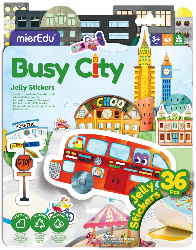 Explorați agitația urbană cu Setul creativ cu stickere moi reutilizabile – Orașul în mișcare! Un set plin de viață care le permite copiilor să construiască propriul oraș animat: camioane de pompieri, mașini de poliție, metroul aglomerat, cafenele cochete și multe altele — toate din stickere gel moi, reutilizabile și fără urme.