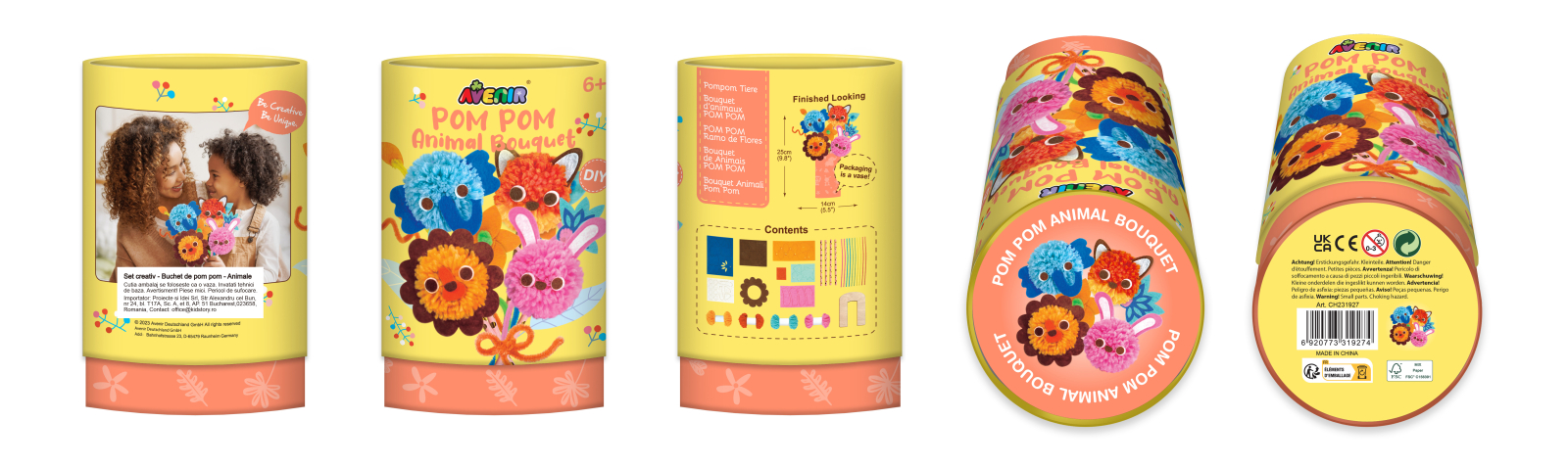 Transformă orele de joacă într-o aventură creativă cu Setul creativ Pom Pom - Buchet animăluțe de la Avenir! Acest set fascinant îi permite copilului tău să creeze un buchet unic de animăluțe adorabile folosind tehnica pom-pom. Perfect pentru dezvoltarea abilităților manuale și a imaginației, acest kit este ideal pentru micii artiști cu vârsta de 5 ani și peste.
