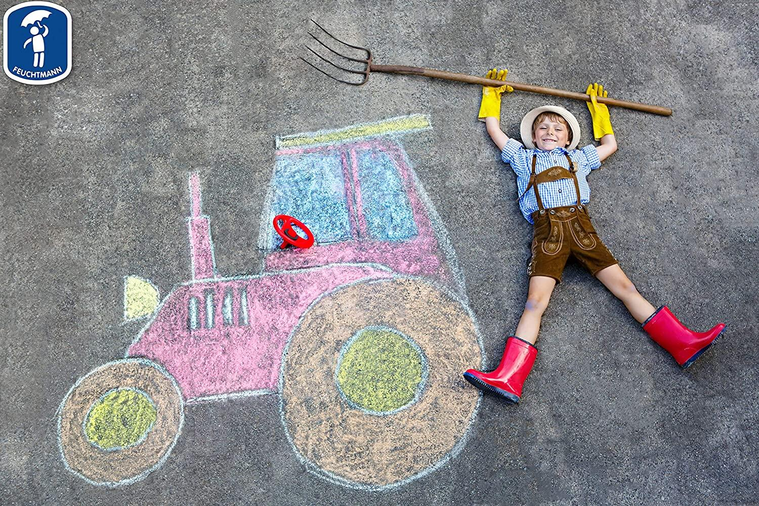Creta premium Feuchtmann este perfecta atat pentru desene pe asfalt cat si pe tabla.