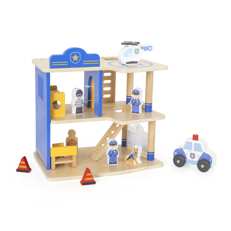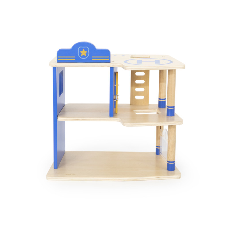 Un set de joaca plin de actiune, perfect pentru micii ofiteri de politie! Statia de politie complet echipata stimuleaza imaginatia, spiritul de echipa si gandirea strategica prin joaca de rol captivanta. Statie de Politie Completa: Include cladirea statiei, o masina de politie si un elicopter pregatit pentru urmariri rapide si interventii din aer. Personaje si Accesorii: Setul contine 2 politisti, un hot istet si un caine de politie loial – tot ce e nevoie pentru misiuni pline de suspans! Dezvoltare Prin Joaca: Incurajeaza creativitatea, cooperarea si rezolvarea de probleme intr-un cadru educativ si distractiv. Gata de Joaca: Setul este complet asamblat – deschide cutia si aventura incepe! O jucarie educativa Montessori ideala pentru copiii pasionati de actiune si ordine! Jucarie educativa din lemn, Montessori.   Material: lemn   Dimensiuni: 33 x 22 x 32,5 cm   Varsta recomandata: 3 ani+   Ambalare: 1 colet, 2 kg   AVERTISMENT! Contraindicat copiilor mai mici de 3 ani. Jucaria/produsul poate contine piese mici care se pot inghiti sau inhala existand pericolul de sufocare sau nu este potrivita copiilor mai mici de luni. Toate jucariile marca VIGA sunt fabricate din lemn de calitate cu vopsele si cerneluri non-toxice, supuse testelor de siguranta respectand standardele pentru jucarii ale Uniunii Europene EN71 si ASTM. Nu lasati ambalajul produsului la indemana copiilor. Indepartati orice ambalaj al produsului inainte de a da jucaria copilului. Va recomandam sa supravegheati copilul in timp ce se foloseste produsul. Pastrati instructiunile si etichetele pentru referinte viitoare. Feriti produsul de foc, temperaturi ridicate si umiditate.