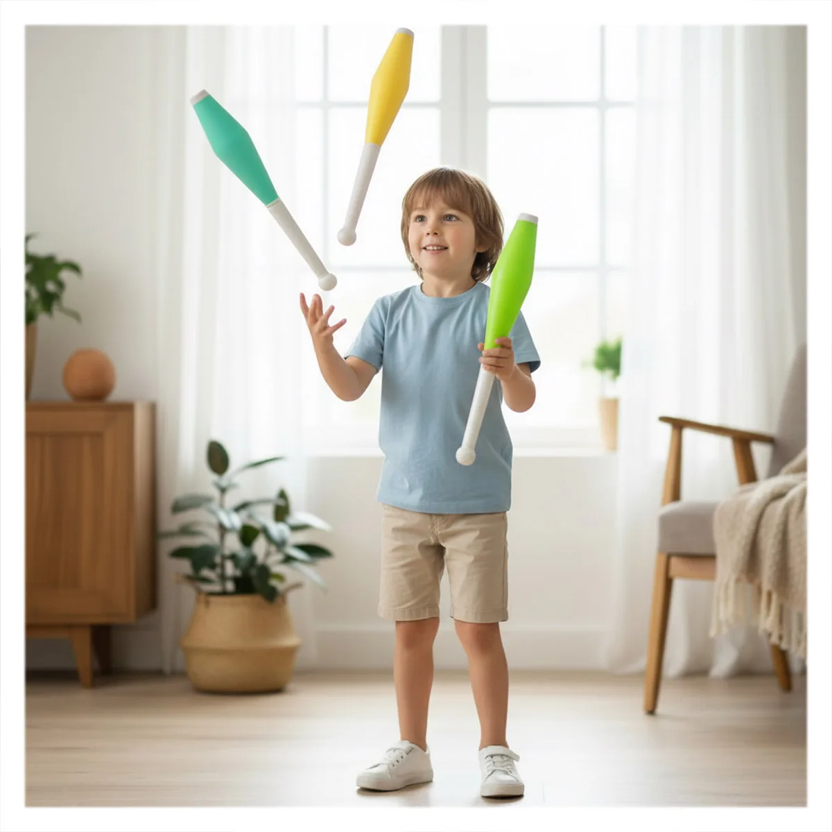 Jongleria este o activitate excelentă pentru stimularea coordonării și concentrării. Prin exercițiu, copiii își îmbunătățesc reflexele, răbdarea și controlul mișcărilor, într-un mod distractiv și captivant.