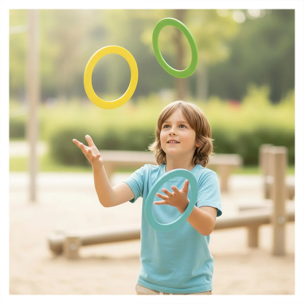 Cei mici pot începe cu eșarfele de jonglerie, care plutesc ușor prin aer, oferindu-le timp să reacționeze. Apoi pot încerca mingile de jonglerie înainte de a trece la inele și măciuci de jonglerie mai provocatoare. Diabolo-ul colorat le va permite să exerseze trucuri impresionante, în timp ce farfuria de jonglerie cu băț le va testa testează simțul echilibrului.