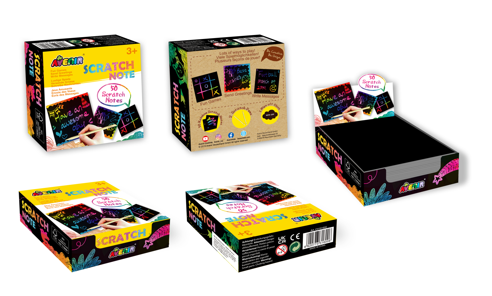 ⚠️ **Avertismente de siguranță:** - Potrivit pentru copii cu vârsta între 3 și 5 ani. Conține piese mici – risc de sufocare. - Utilizați numai sub supravegherea unui adult. - Verificați periodic integritatea stylus-ului și a cartonașelor. Resturile rezultate pot fi periculoase dacă sunt înghițite. - Evitați ingestia sau contactul cu ochii al particulelor fine. - Răzuiți pe o suprafață stabilă și curată pentru un rezultat sigur și plăcut. - În caz de iritație cutanată (eritem, mâncărime), întrerupeți utilizarea. - A nu se lăsa la îndemâna copiilor mici. - A se păstra într-un loc uscat, răcoros, ferit de umezeală. - Produs realizat de Avenir Deutschland GmbH, conform standardelor de siguranță pentru produse creative destinate copii.