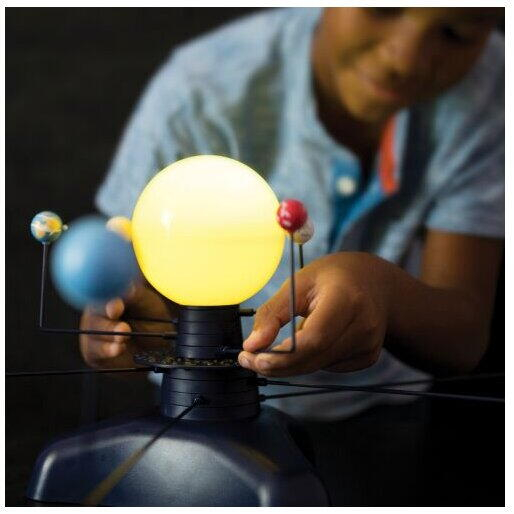 Cu ajutorul acestui sistem solar, copiii vor putea intelege miscarea planetelor in sistemul nostru solar si vor descoperi importanta soarelui. Soarele straluceste pentru cele 8 planete care orbiteaza in jurul sau, iar copiii vor putea vedea aceasta miscare realista cu ajutorul modelelor motorizate care se rotesc. Apoi transforma soarele intr-un planetariu pentru a vedea indeaproape stelele. Imaginea sistemului solar se proiecteaza pe tavan in orice incapere intunecata.