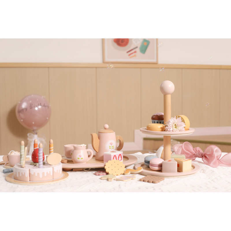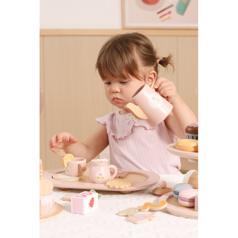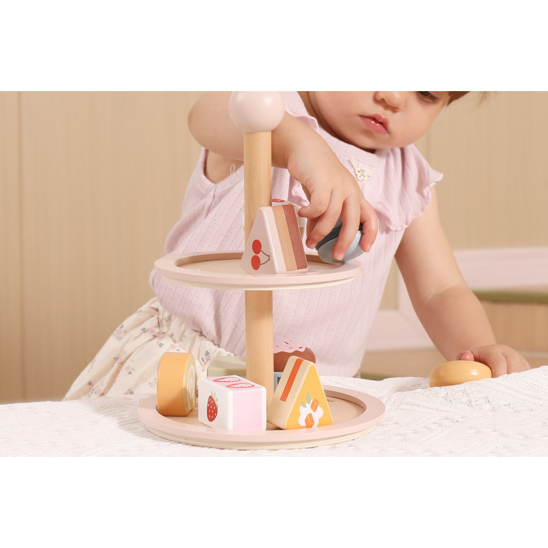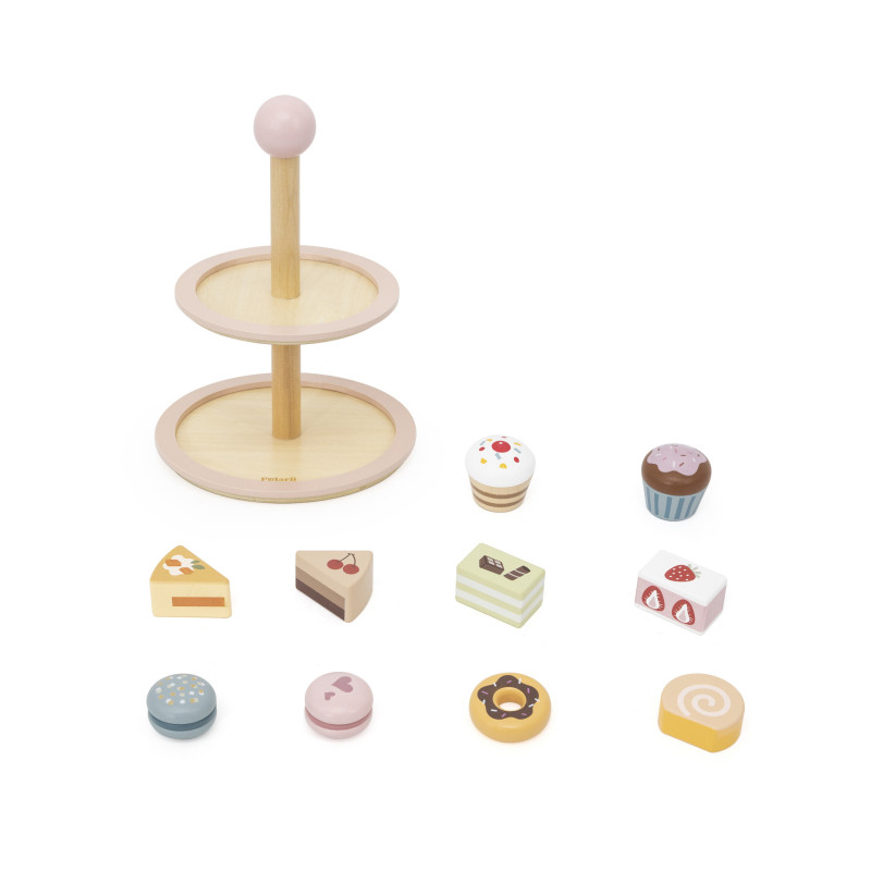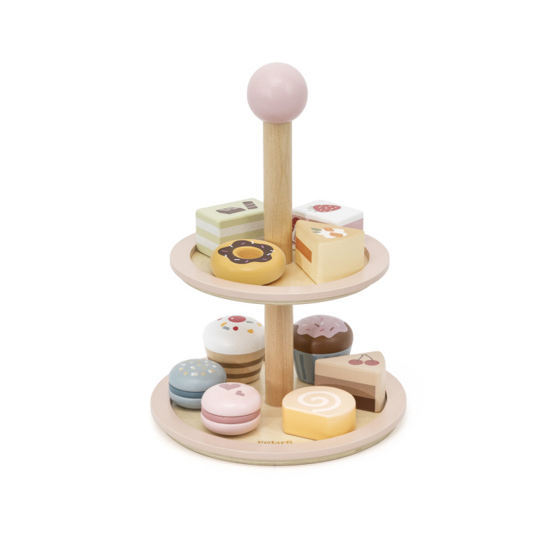 Acest suport din lemn pentru prajituri este mereu pregatit pentru ora ceaiului si ii va tine pe cei mici ocupati ore intregi cu joaca creativa si educativa.• Setul include 10 prajituri din lemn si un suport etajat cu 2 niveluri.• Dimensiunea potrivita si marginile rotunjite sunt perfecte pentru mainile mici ale copiilor.• Realizat din materiale non-toxice, sigure chiar si atunci cand copilul duce jucaria la gura.• Incurajeaza imaginatia, jocul de rol si dezvoltarea abilitatilor sociale.Ideal pentru mamici care cauta jucarii educative Montessori din lemn, jucarii de rol pentru copii, jocuri creative si sigure pentru dezvoltarea armonioasa a celor mici. Dimensiuni: 18 × 18 × 25 cm Varsta recomandata: 18 luni Jucarie educativa din lemn, Montessori.   *AVERTISMENT! Toate jucariile marca VIGA sunt fabricate din lemn de calitate cu vopsele si cerneluri non-toxice, supuse testelor de siguranta respectand standardele pentru jucarii ale Uniunii Europene EN71 si ASTM. Nu lasati ambalajul produsului la indemana copiilor. Indepartati orice ambalaj al produsului inainte de a da jucaria copilului. Va recomandam sa supravegheati copilul in timp ce se foloseste produsul. Pastrati instructiunile si etichetele pentru referinte viitoare. Feriti produsul de foc, temperaturi ridicate si umiditate.