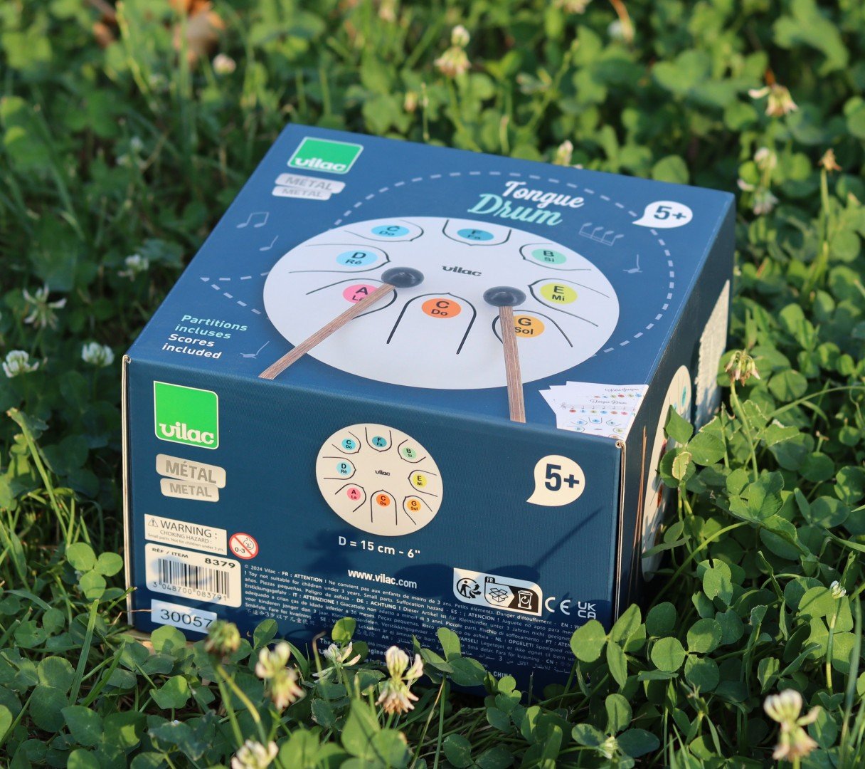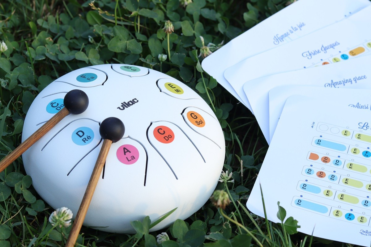 Un prim pas in lumea minunata a muzicii cu aceasta toba / tambur xilofon din otel! Acest instrument de percutie metalic cu un sunet zen si linistitor se spune ca este de origine azteca. Precum un xilofon, fiecare "limba" metalica produce un sunet unic. Acordata in Do major si cu o octava, aceasta toba xilofon va permite copiilor sa invete despre muzica in timp ce se distreaza. Echipa noastra de experti in muzica a creat partituri speciale pentru ca cei mici sa inceapa sa exerseze cu cateva melodii cunoscute. O fisa explicativa le va permite, de asemenea, sa inteleaga relatia dintre sunetele produse de 'limbile' tobei si notatia clasica (gama Do scrisa si cu litere anglo-saxone), precum si corespondenta cu durata notelor, ritmul (optime, patrime, patrime cu punct, doime, doime cu punct, nota intreaga). Punctele forte: • Un instrument muzical original din metal, durabil • Un sunet original, duios și zen • Partituri si o metoda originala de invatare • Primii pasi în muzica • Jucarie pentru initierea in sunete si ritmuri • Invatarea cauzalitatii: o limba de metal = un sunet • Jucarie de imitatie pentru a face ca cei mari • Dezvoltarea competentelor auditive • Stimularea creativitatii • Dezvoltarea motricitatii fine Contine: • O toba xilofon • O pereche de betisoare din lemn si cauciuc natural • Un saculet pentru depozitare și transport. • 10 partituri. Varsta recomandata: 5 ani + Material: metal Dimensiuni: diametru 15 cm Brand: VILAC Numeroase beneficii ale acestei "tongue drum" La varsta de 5 ani, copilul dumneavoastra trece printr-o etapa cruciala a dezvoltarii, iar activitatile muzicale au un impact semnificativ asupra cresterii cognitive, emotionale si fizice. Utilizand tamburul VILAC cu limbi metalice, copilul isi va imbunatati abilitatile motorii fine: lovind limbile metalice, isi perfectioneaza coordonarea mana-ochi si isi intareste muschii degetelor. Aceasta activitate manuala contribuie, de asemenea, la dezvoltarea dexteritatii si a preciziei. In plus, cantatul notelor si crearea sunetelor ii permit copilului sa descopere relatia cauza-efect. Un instrument decorativ Acest "tongue drum" din metal va fi un accesoriu decorativ foarte modern in interiorul casei dumneavoastra. Cu forma sa rotunda si culoarea stralucitoare care capteaza lumina, isi va gasi cu usurinta locul in sufrageria dumneavoastra sau in camera copilului. Avertisment: Jucarie testata în laborator, care garanteaza conformitatea cu Directiva 2009/48/CE pentru un copil de peste 5 ani. ATENTIE! Nu este potrivita pentru copiii sub 3 ani. Elemente mici. Pericol de sufocare.