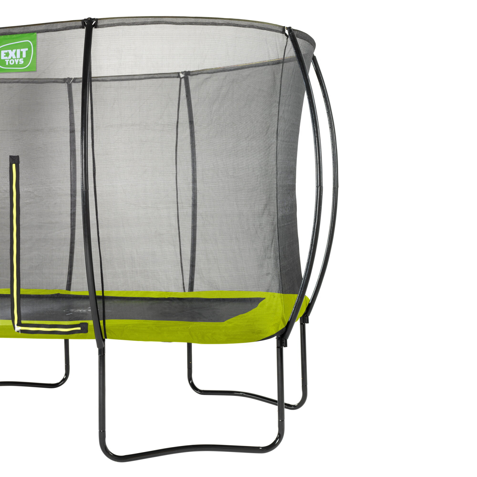 Trambulina EXIT Silhouette pe picioare este o trambulină dreptunghiulară. Plasa de siguranță este o caracteristică standard livrată cu această trambulină. Trambulina este echipată cu suporturi curbate, astfel încât plasa se întinde strâns. Marginea de protecție de înaltă calitate acoperă complet arcurile galvanizate și este echipată cu un sistem de protecție a picioarelor special dezvoltat, care previne blocarea piciorului între arcuri. Arcurile robuste garantează o putere mare de săritură. Cadrul trambulinei Silhouette este galvanizat și vopsit în câmp electrostatic împotriva ruginii. Cu siguranță te vei distra la nesfârșit sărind pe trambulina dreptunghiulară EXIT Silhouette!