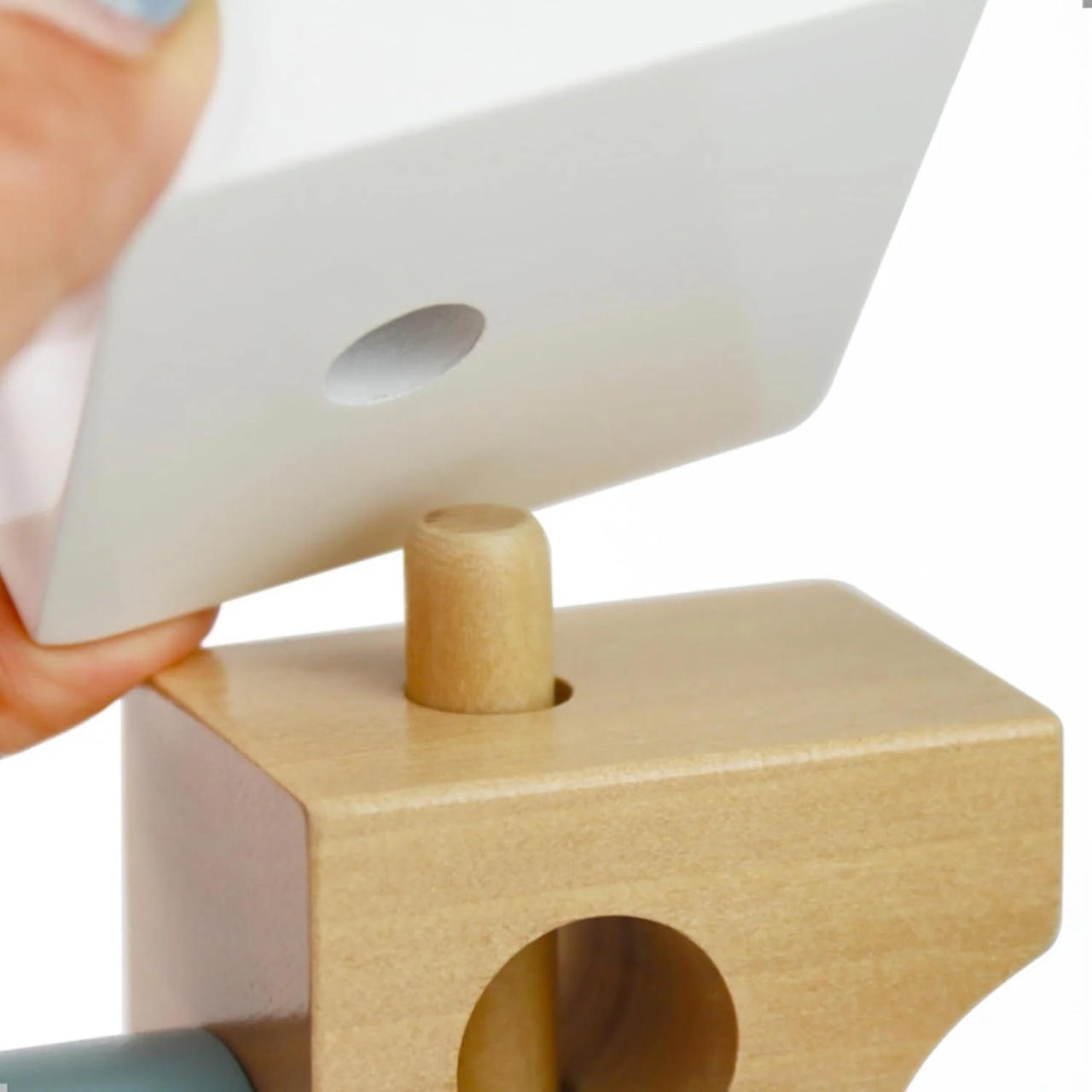 Trenulet cu forme din lemn Trenulet din lemn pentru copii 2 in 1 cu 18 piese. Cei mici pot deveni nu numai mecanici de tren, ci si constructori. Trenul este format dintr-o locomotiva si doua vagoane si poate fi complet dezasamblat in parti individuale. Jucaria de tras (snur incorporat) poate fi transformata intr-o jucarie Montessori pentru sortare si stivuire in cel mai scurt timp. Copiii pot crea diferite combinatii colorate si de diferite forme ale vagoanelor, isi pot construi in afara vagoanelor sau pur si simplu se pot intrece prin casa cu trenul. Creativitatea nu are limite, in acelasi timp, copilul invata sa recunoasca culorile si formele, isi imbunatateste abilitatile motorii (coordonarea ochi-mana) si isi dezvolta gandirea spatiala si logica. Cadou ideal pentru zile de nastere, Craciun, Paste sau Ziua Copilului. Continut: 18 piese din lemn. Prinderea intre vagoane se face cu piese de plastic. Dimensiune trenulet 37 x 12 x 7 cm. Varsta recomandata: +2 ani Confectionat din lemn cu vopsele ecologice pe baza de apa, plastic. Conform normelor EN71&ASTM cu certificare CE. AVERTISMENT: Contraindicat copiilor sub 2 ani! Se recomanda supravegherea copilului de catre un adult in timpul jocului. Produs in China pentru UMU Toys, Germania.