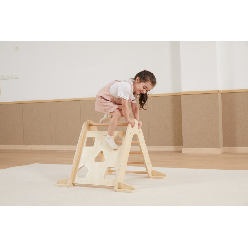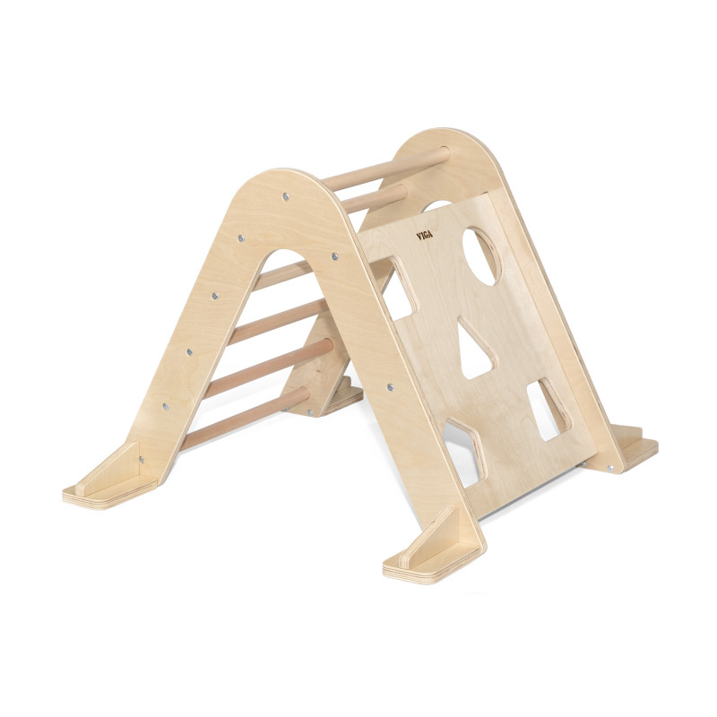 Acest triunghi de catarare ofera posibilitati nelimitate si distractie nesfarsita prin€¦ catarare! Excelent pentru dezvoltarea abilitatilor motorii, exersarea echilibrului si coordonarea corpului. Un material educativ perfect pentru mediile de invatare timpurie, crese, gradinite, scoli, after schools, camere de asteptare sau cabinete medicale pediatrice. Jucarie educativa din lemn, Montessori.   Material: fag si placaj de inalta calitate. Dimensiuni: 74 x 80,6 x 58 cm; Ambalare: 1 colet; 6,7 kg Varsta recomandata: 18 luni+ *AVERTISMENT! Contraindicat copiilor mai mici de 18 luni. Jucaria/produsul poate contine piese mici care se pot inghiti sau inhala existand pericolul de sufocare sau nu este potrivita copiilor mai mici de luni. Toate jucariile marca VIGA sunt fabricate din lemn de calitate cu vopsele si cerneluri non-toxice, supuse testelor de siguranta respectand standardele pentru jucarii ale Uniunii Europene EN71 si ASTM. Nu lasati ambalajul produsului la indemana copiilor. Indepartati orice ambalaj al produsului inainte de a da jucaria copilului. Va recomandam sa supravegheati copilul in timp ce se foloseste produsul. Pastrati instructiunile si etichetele pentru referinte viitoare. Feriti produsul de foc, temperaturi ridicate si umiditate.