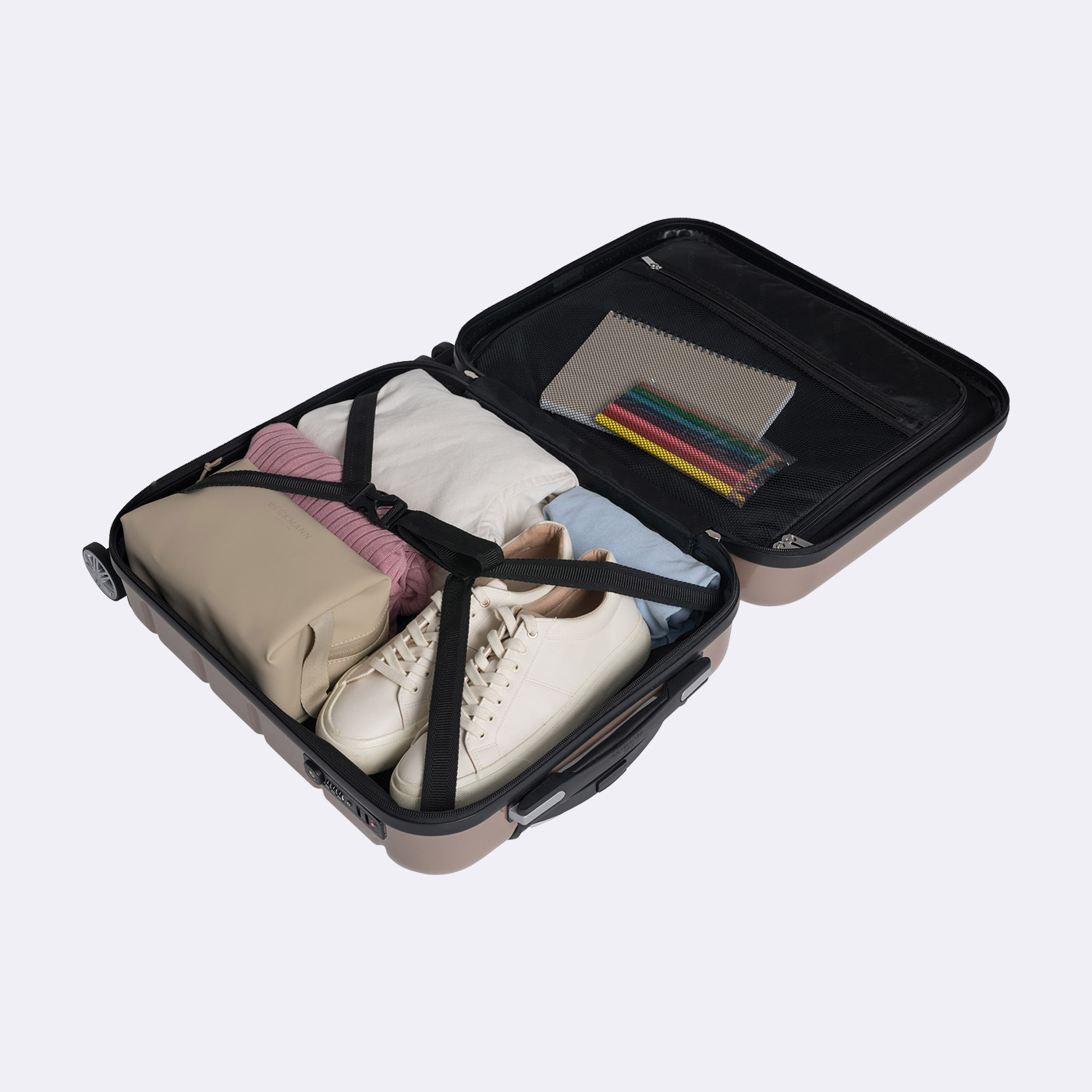 Troler robust cu carcasa rigida pentru bagajele de mana. Lacat cu combinatie TSA recunoscut in SUA. De inalta calitate si 5 ani garantie. Roti duble silentioase, rotative la 360 . Maner telescopic reglabil pe inaltime. Interiorul valizei este complet captusit cu material textil. Curele de ambalare si buzunar suplimentar cu fermoar in interior. Maner de transport superior cauciucat. Functii Lacat cu combinatie TSA (recunoscut in SUA) Roti duble rotative la 360 Maner telescopic reglabil pe inaltime Maner de transport superior cauciucat Curele de ambalare in interior Buzunar suplimentar cu fermoar in interior Tehnic Dimensiuni: 55Ãmdash;39Ãmdash;21 cm Greutate: 2700 grame Material: ABS + FILM PC Colectie: 2025 Culoare: beige Numar articol: 709092a EAN: 7049987090928