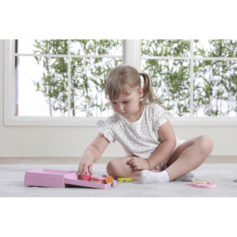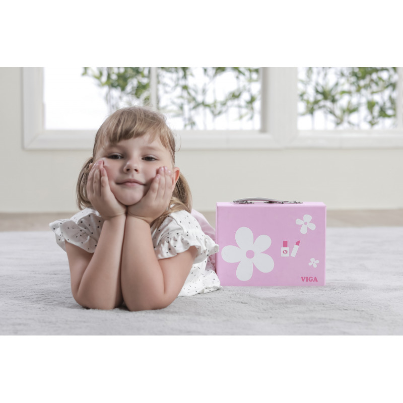 Trusa de make-up include tot ce este necesar pentru ca micuta ta printesa sa se bucure de ore intregi de distractie: o oglinda, un pieptene, trusa de farduri, o sticluta de parfum, oja, un ruj, un flacon de crema, o caseta cu pudra.  Vine cu o caseta practica de transport. Jucarie educativa din lemn, Montessori.   Dimensiuni: 21 x 16 x 5,7 cm   Varsta recomandata: 3 ani+ *AVERTISMENT! Contraindicat copiilor mai mici de 3 ani. Jucaria/produsul poate contine piese mici care se pot inghiti sau inhala existand pericolul de sufocare sau nu este potrivita copiilor mai mici de luni. Toate jucariile marca VIGA sunt fabricate din lemn de calitate cu vopsele si cerneluri non-toxice, supuse testelor de siguranta respectand standardele pentru jucarii ale Uniunii Europene EN71 si ASTM. Nu lasati ambalajul produsului la indemana copiilor. Indepartati orice ambalaj al produsului inainte de a da jucaria copilului. Va recomandam sa supravegheati copilul in timp ce se foloseste produsul. Pastrati instructiunile si etichetele pentru referinte viitoare. Feriti produsul de foc, temperaturi ridicate si umiditate.