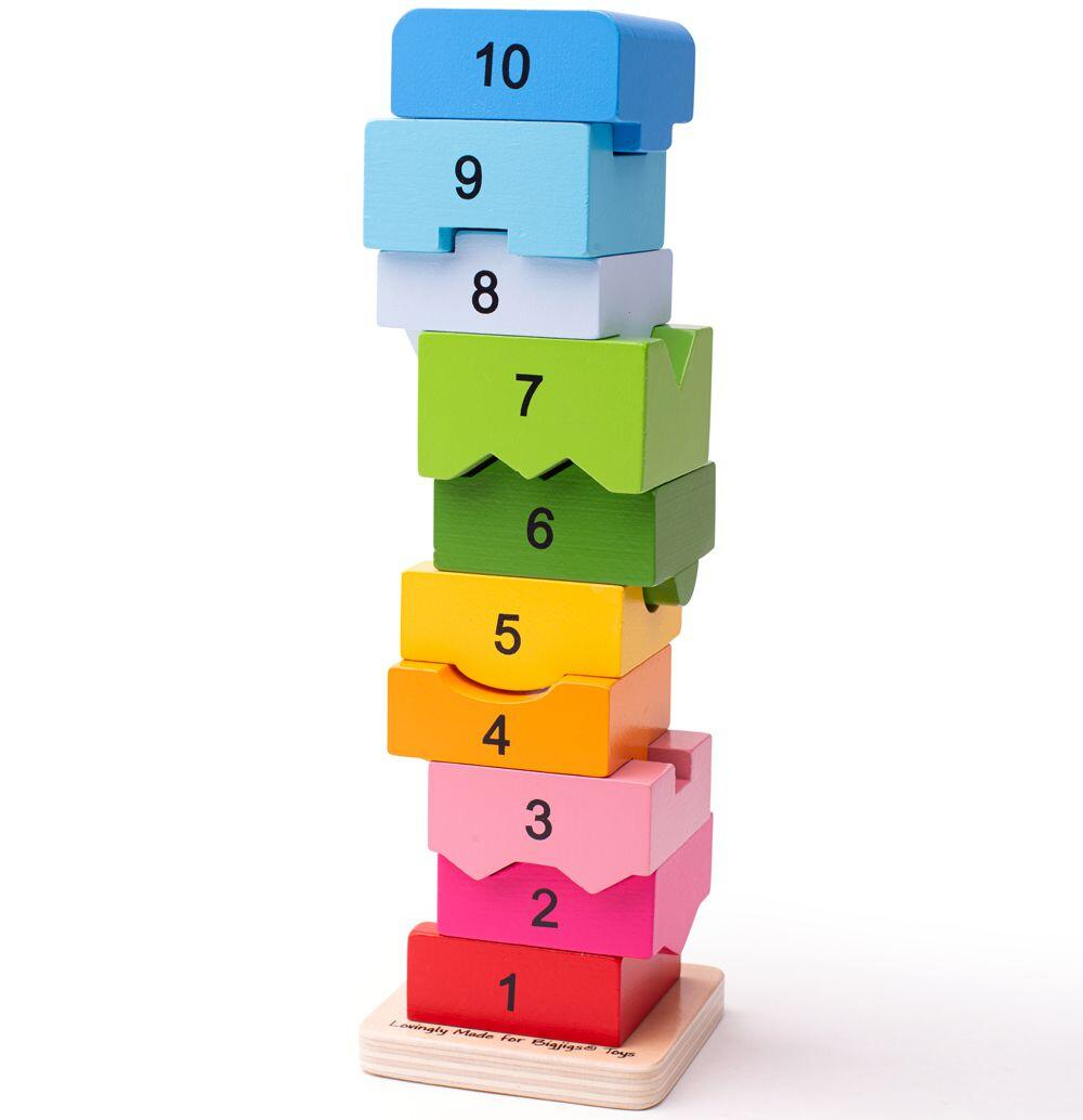 Cu ajutorul turnuletului din lemn cu numere, copilului tau va putea sa invete mai usor cifrele, sa asocieze cifra cu multimea de puncte de pe fiecare piesa, sa recunoasca culorile, dar si sa invete sa numere.