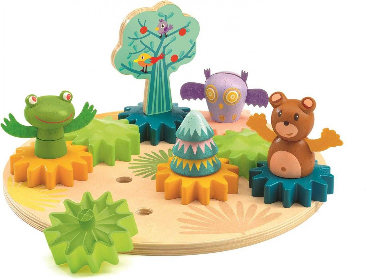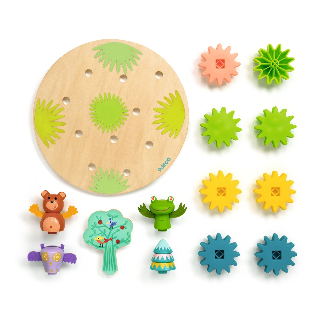 Varsta recomandata: +18 luni. O varianta adaptata pentru cei mici a unui circuit. Potriveste discurile dintate si construieste liber o gradina cu elemente contectate intre ele. Un joc care dezvolta creativitatea, motricitatea, logica. Confectionat din  materiale non-toxice, cu vopsele non-toxice, conform reglementarilor EN71&ASTM.   AVERTISMENT: Contraindicat copiilor sub 18 luni. A se utiliza sub directa supraveghere a unui adult. Producator: Djeco, Franta